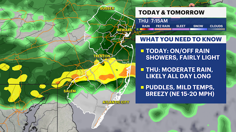 RAINY DAYS: Periods of showers move across New Jersey, melting snow and creating puddles