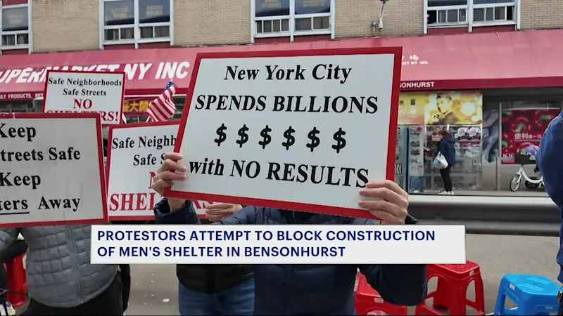 Hundreds of protesters push back on controversial men's shelter construction in Bensonhurst