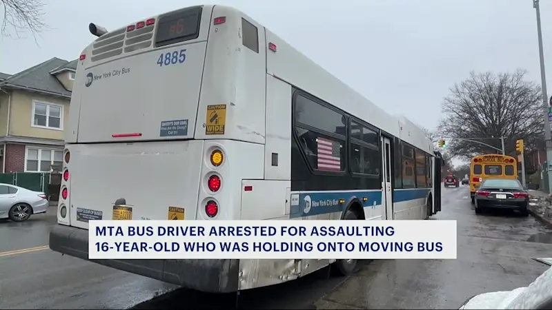 MTA bus driver arrested for assaulting 16-year-old boy who was 'hanging onto' moving bus in Midwood