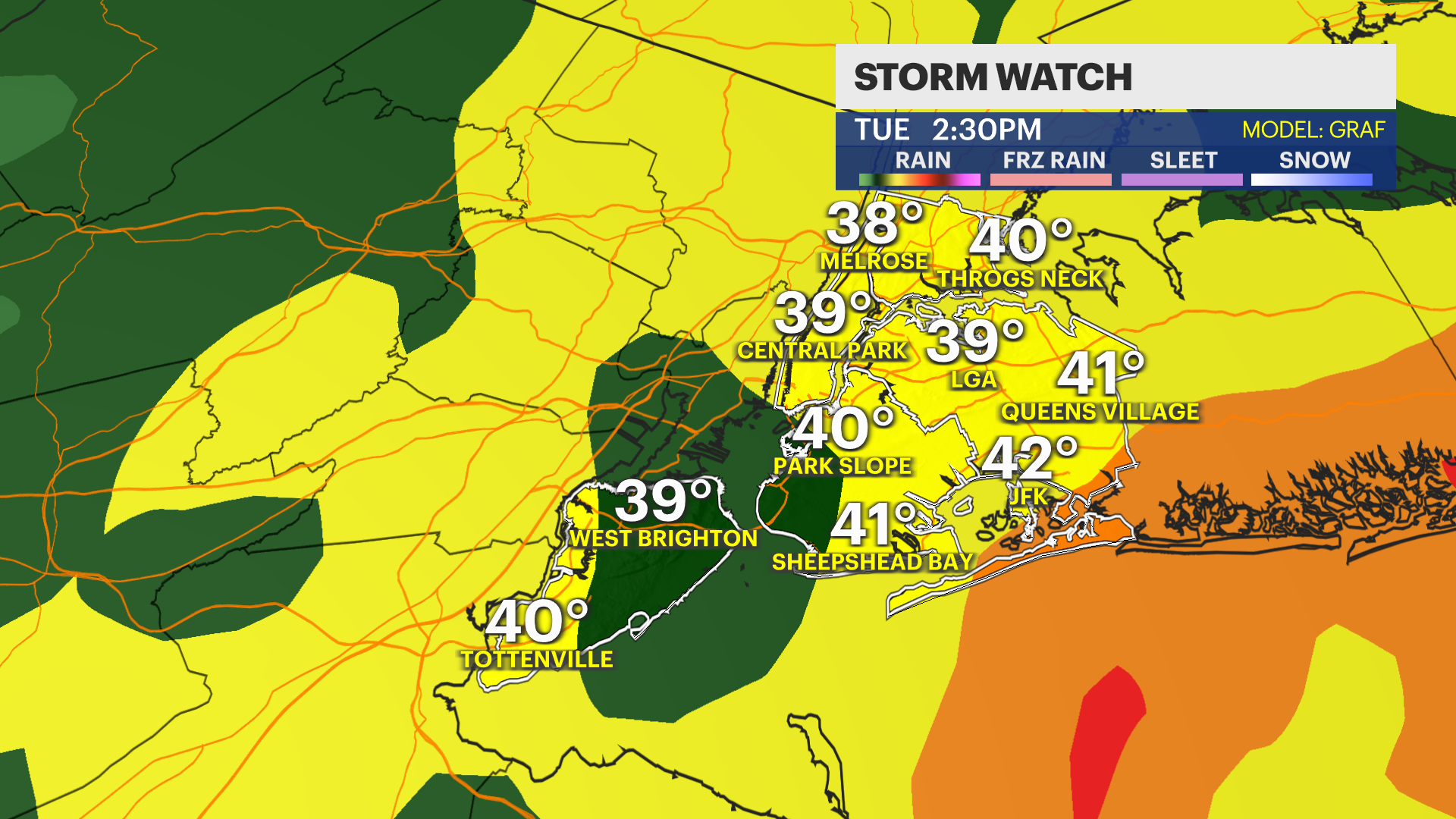 • A storm system brushes South of the city Friday night with a chance of light snow. As of now, it doesn't look like an impactful storm. The whole weekend is trending drier with cold temperatures in the 30s and a mix of clouds and sun. Stay tuned for updates!