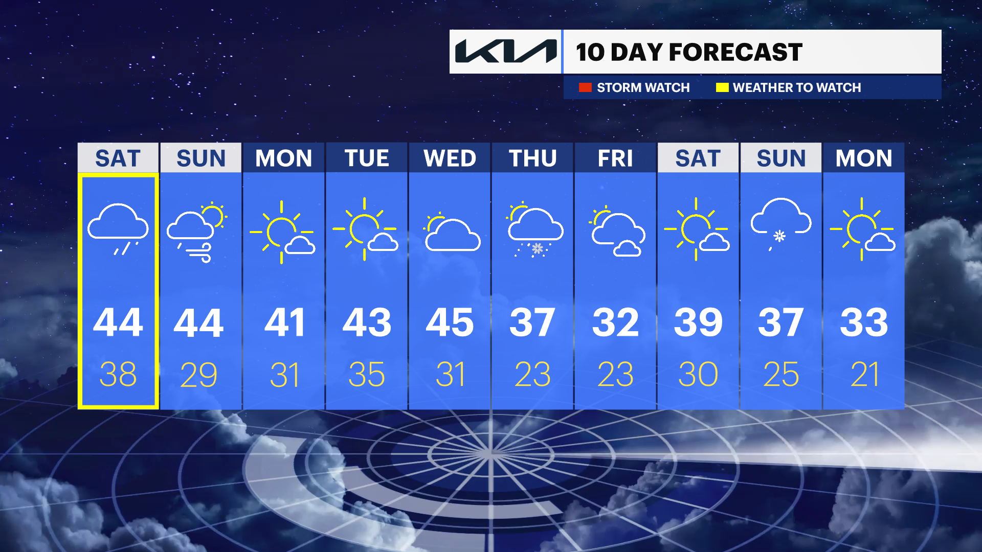 The really warm temperatures won't last. The 40s will stick through Sunday but colder winds will usher in more seasonable temperatures next week.