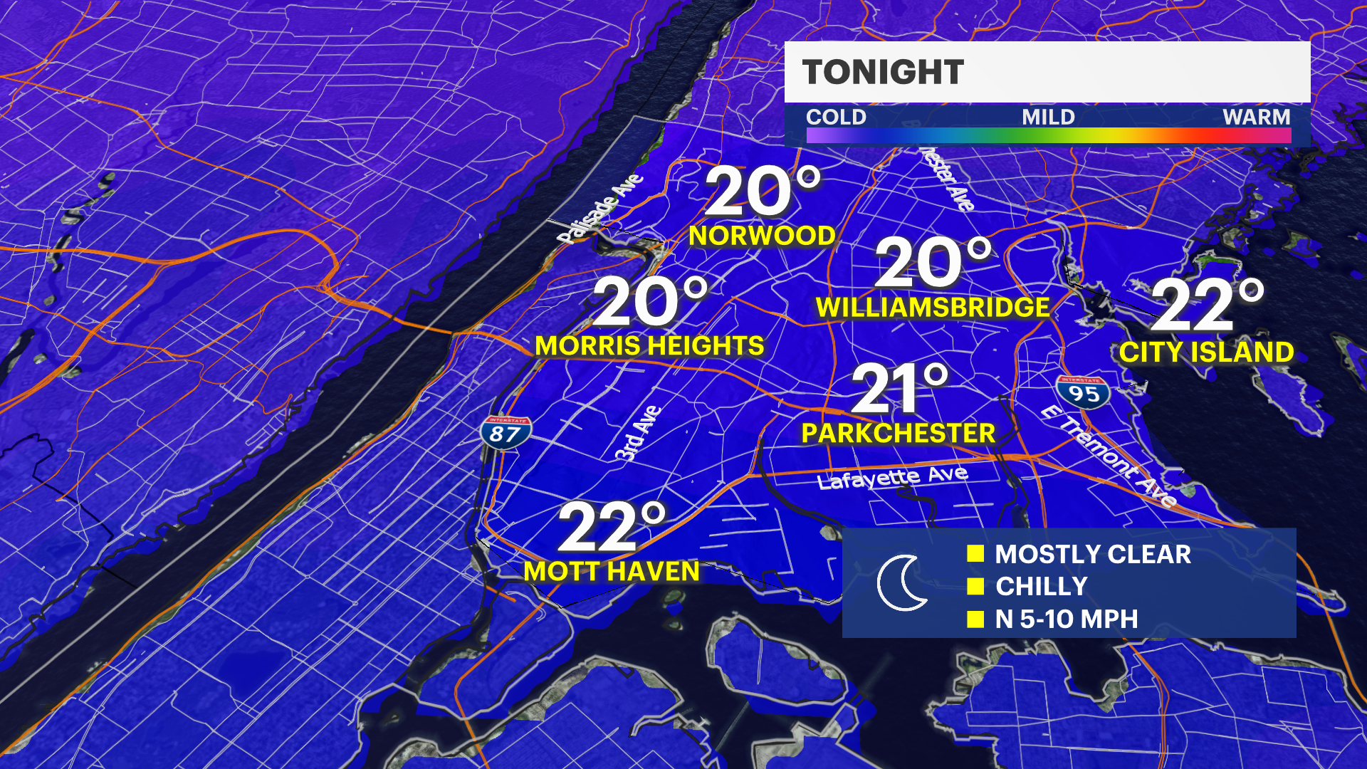 Temperatures fall into the teens overnight as the borough will see a colder set up to start the new work week.