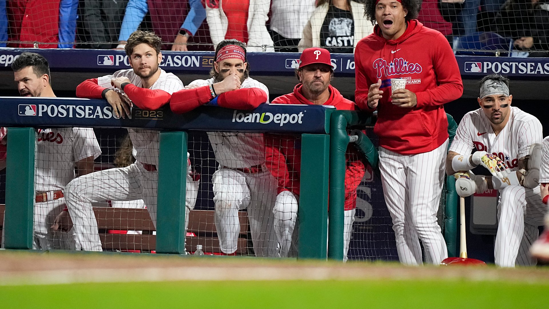 The Phillies led 2-1 in the fourth and had runners on the corners with one out. Castellanos struck out — one of 11 in the NLCS. After a walk to Brandon Marsh, Thomson let Rojas hit rather than use a pinch hitter for the light-hitting outfielder. Rojas struck out, part of a 4-for-43 postseason.