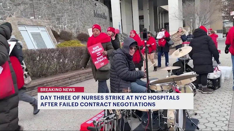 Story image: New York City nurses strike enters Day 3 as contract talks stall