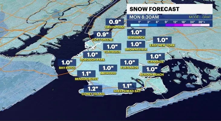 We're tracking the latest on the snow chance in Brooklyn for Monday morning.