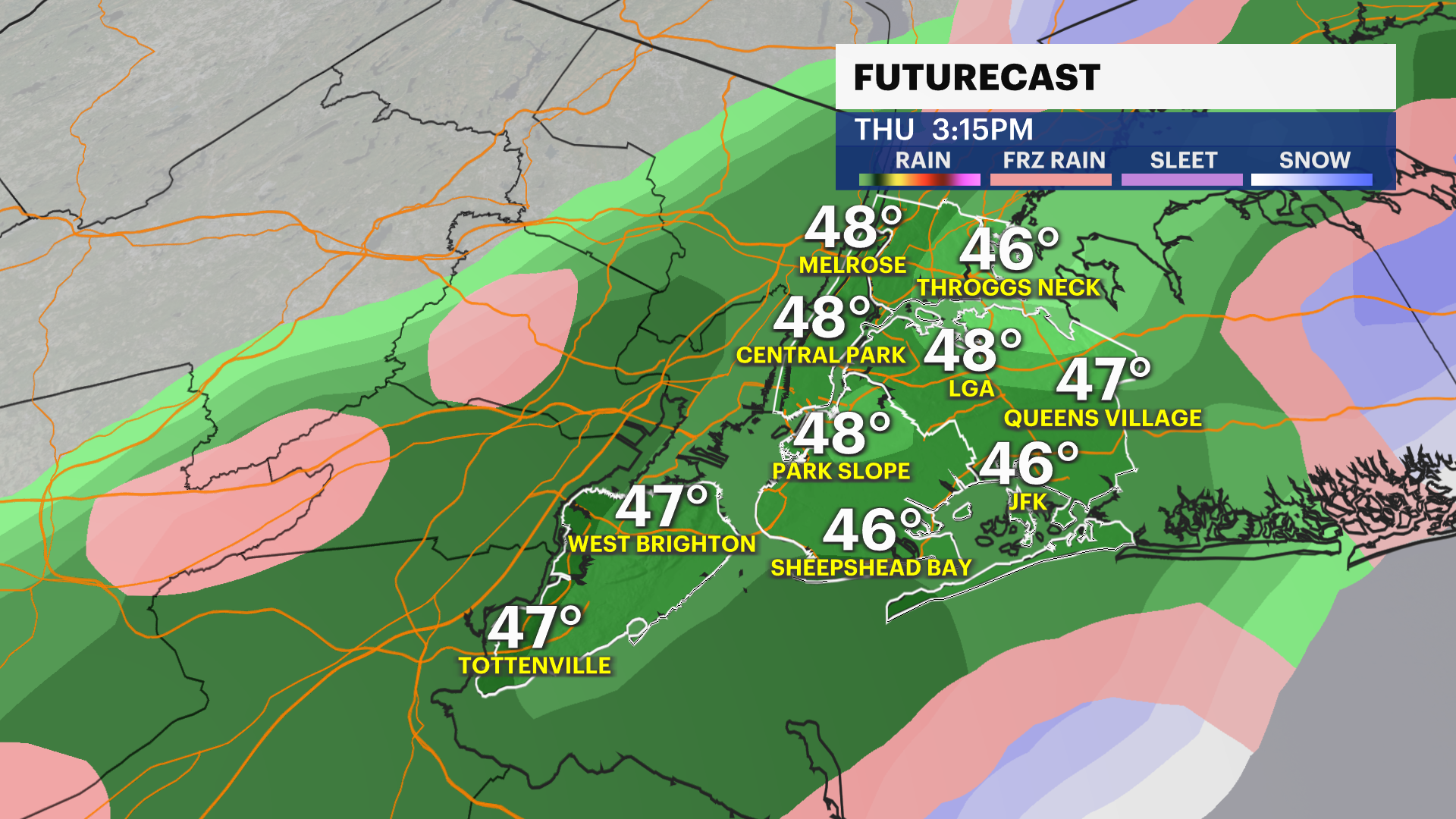 A stronger weather system will approach the region late Wednesday. Most of the day should stay dry across New York City, but clouds will thicken as the system gets closer. By Wednesday evening and overnight, the chance of rain will increase, with gusty winds developing ahead of an approaching cold front.