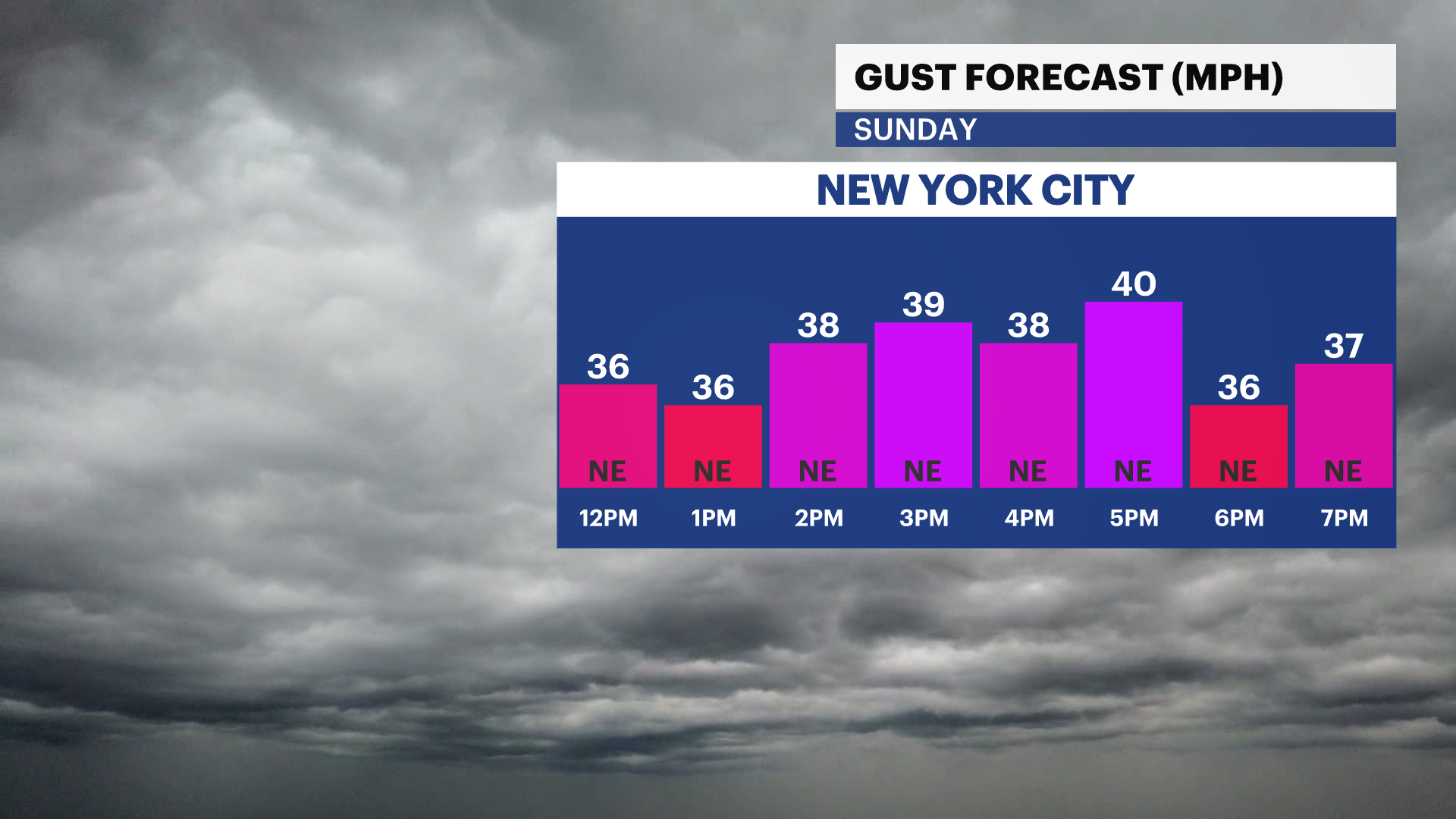 Tonight and Monday potentially can see winds gust up to 35-50 mph along the shoreline. Inland areas will see gusts of 30-35 mph. Due to the persistence and direction, there may be minor damage that can lead to sporadic power outages. Please note that there is still uncertainty regarding how quickly this storm will strengthen and the exact track. Changes in both of these may also change how severe the local impacts will be. Stay with News 12 for more information on how this storm will impact our local area.