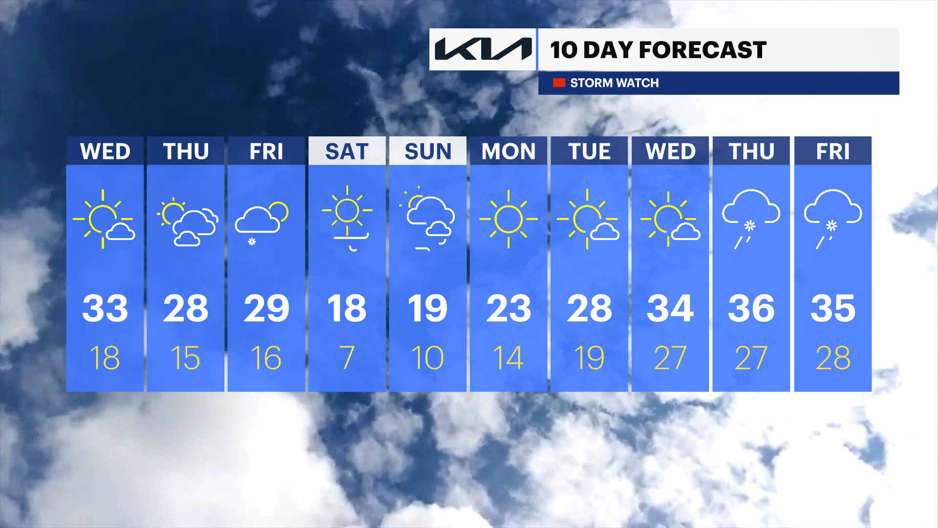 Until then, Wednesday and Thursday will be a combination of sunshine and clouds.