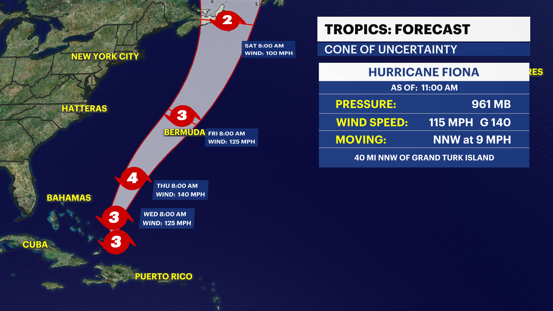 Heavy rain, dangerous flash flooding and damaging winds are impacting the Turks & Caicos. Hurricane Fiona is expected to turn northeast and strengthen to a Category 4 hurricane by Thursday. The next area to monitor will be Bermuda as the storm makes a close eastern turn as a Category 4 Thursday night. However, in our local area, Fiona remains offshore but will still give us dangerous rip currents through this weekend.