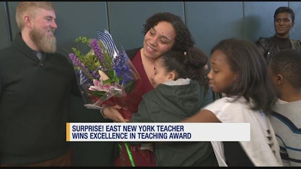 A Brooklyn teacher received a prestigious teaching award Thursday, in front of her students.