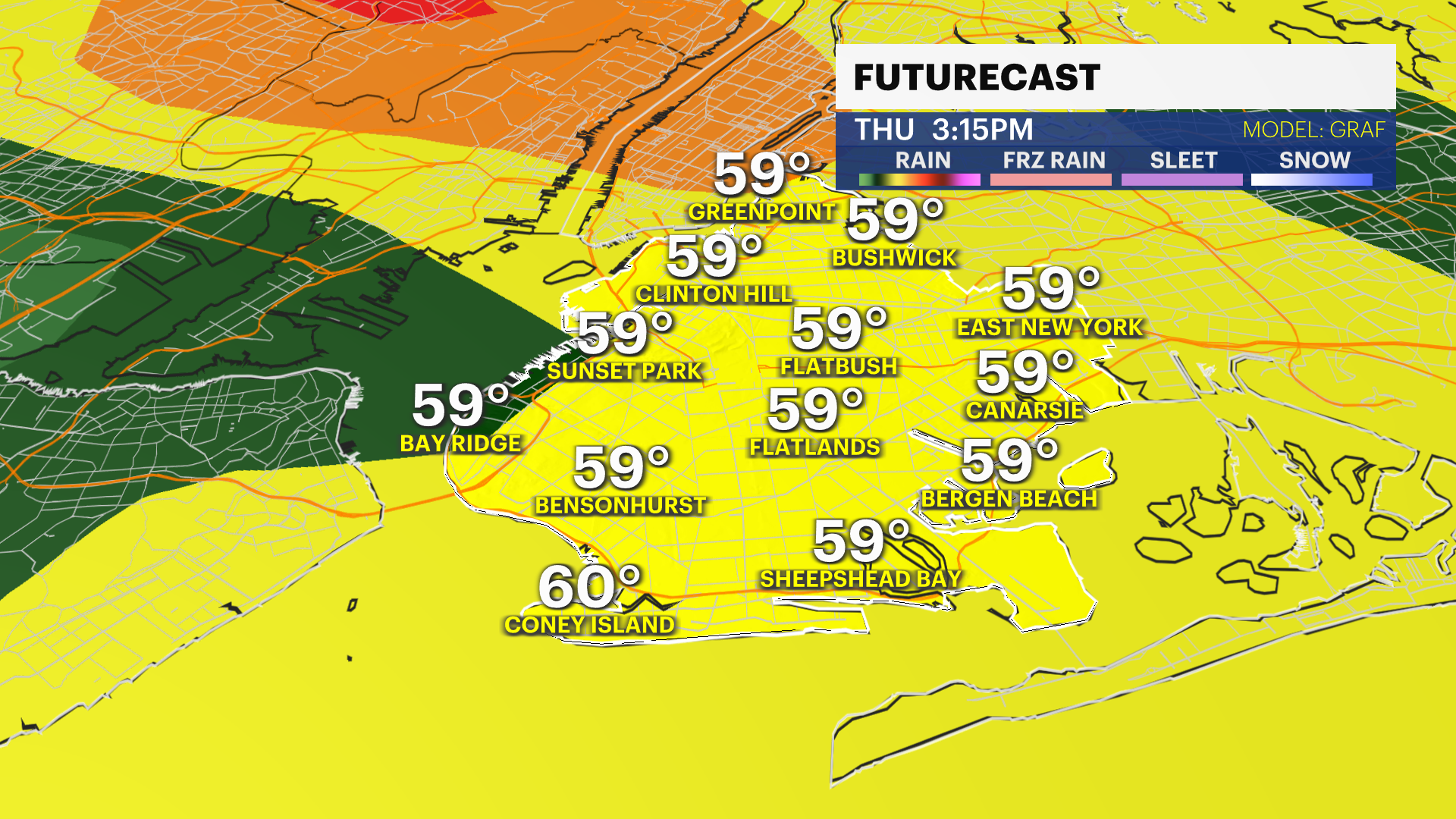 Thursday: Wind-driven rain and cool. Highs near 61. Lows near 50.