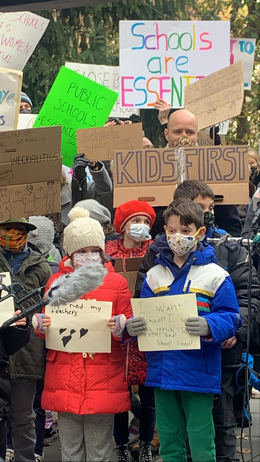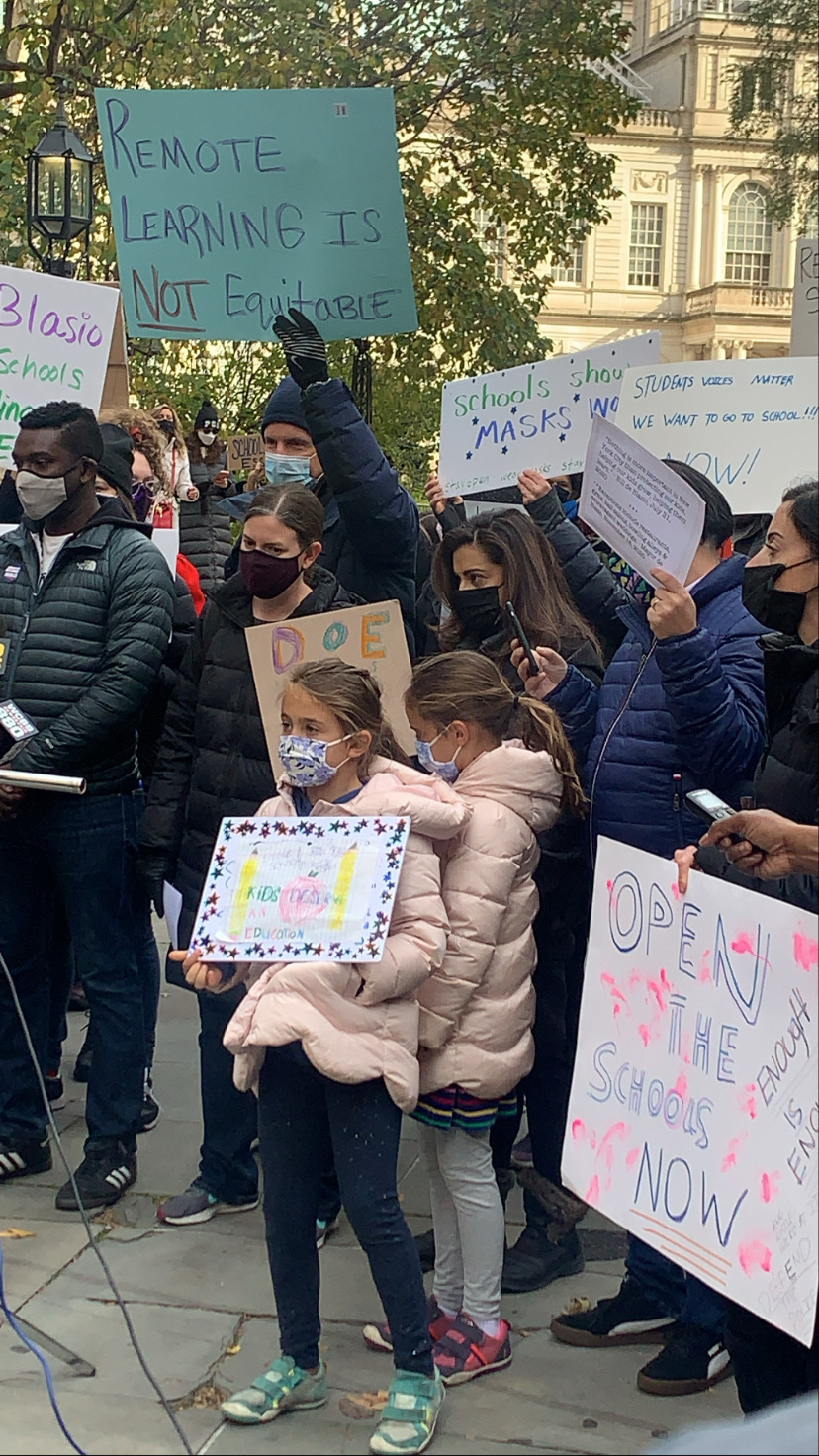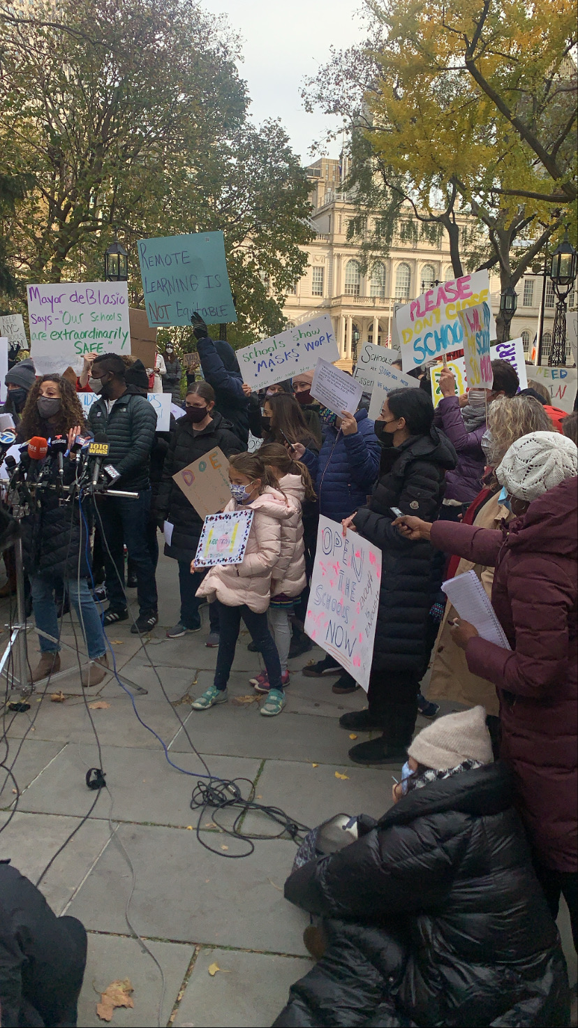 The rally was organized by the Keep NYC Schools Open Movement. The group started a petition to keep the schools open, which has garnered nearly 13,000 signatures.