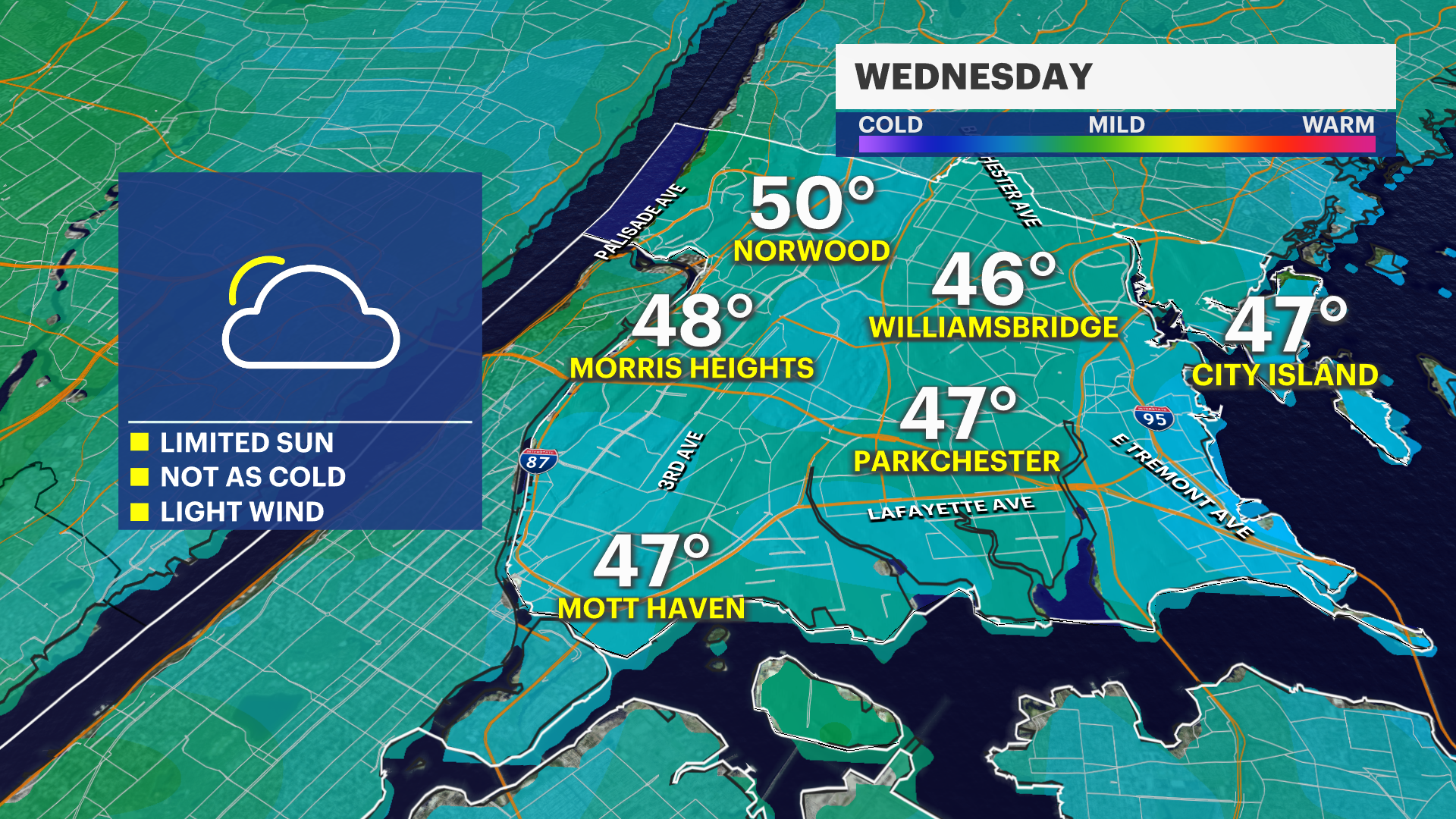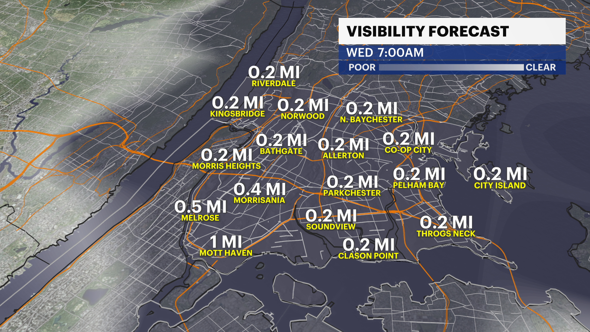 For those traveling today, areas north and west of the city — including parts of the Lower Hudson Valley and interior New Jersey — are under a Winter Weather Advisory from 10 AM to 10 PM due to a greater risk of light icing. That icing threat is mainly outside of the five boroughs.