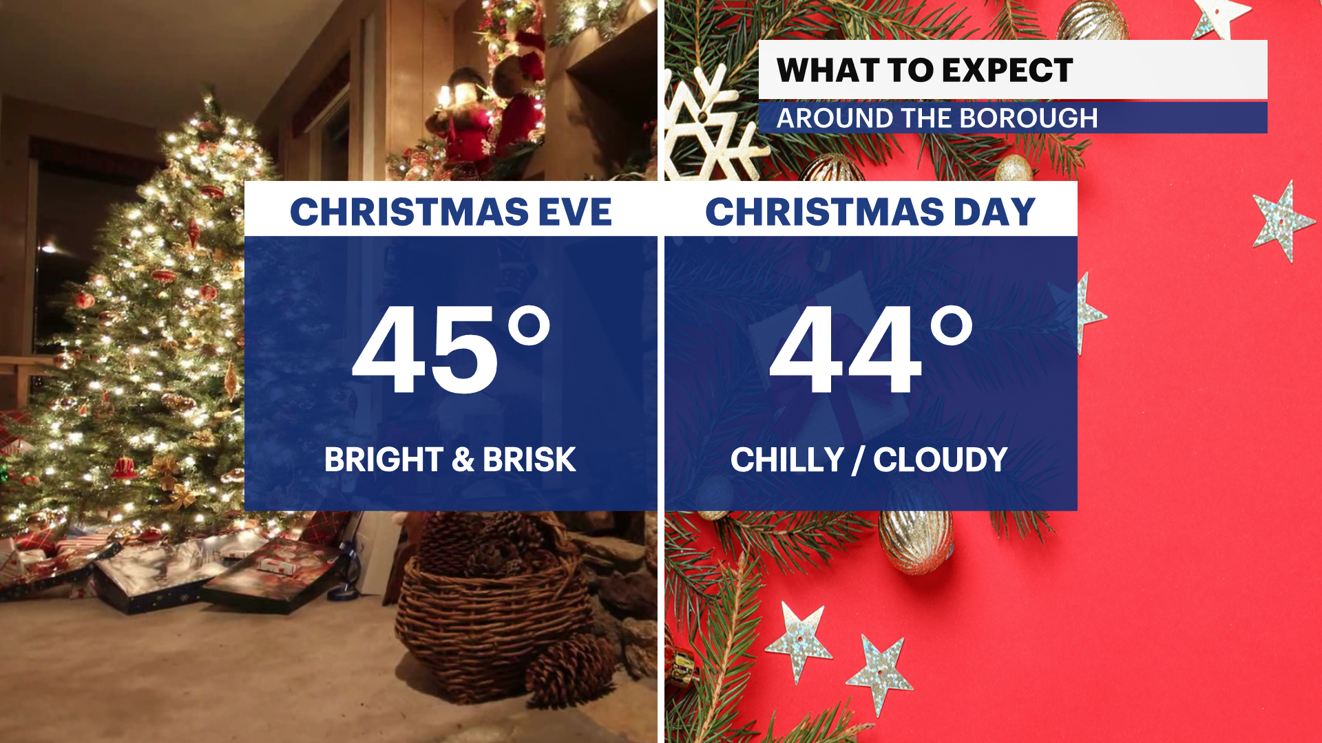 • Temperatures climb just in time for Christmas Eve and Christmas Day. Expect temperatures in the 40s with mainly dry conditions.