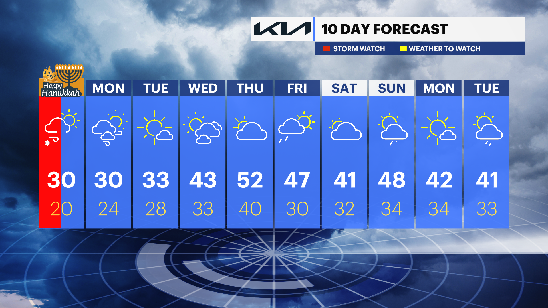 Early next week stays cold and blustery before a gradual warmup arrives mid to late week, with quieter weather returning before another potential system late in the period.