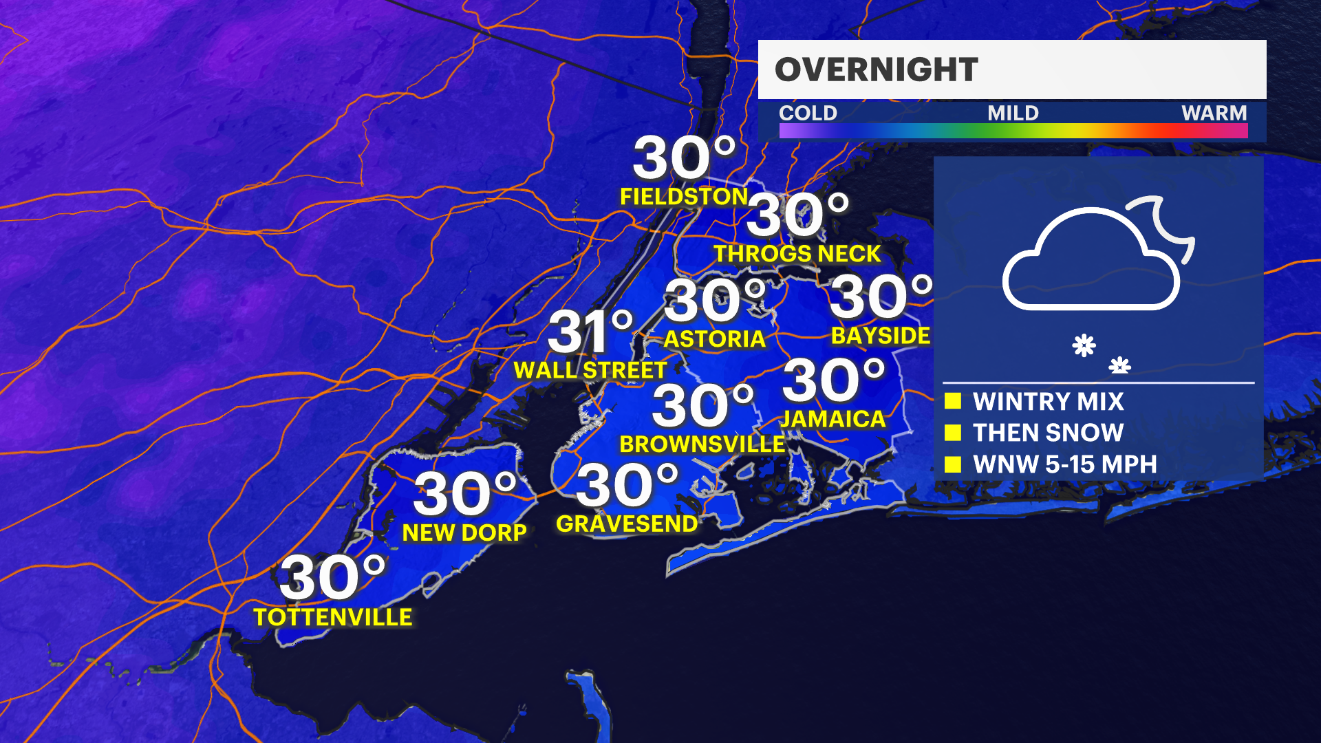 Wednesday: Partly sunny and milder, temperatures climbing into the upper 30s to low 40s.