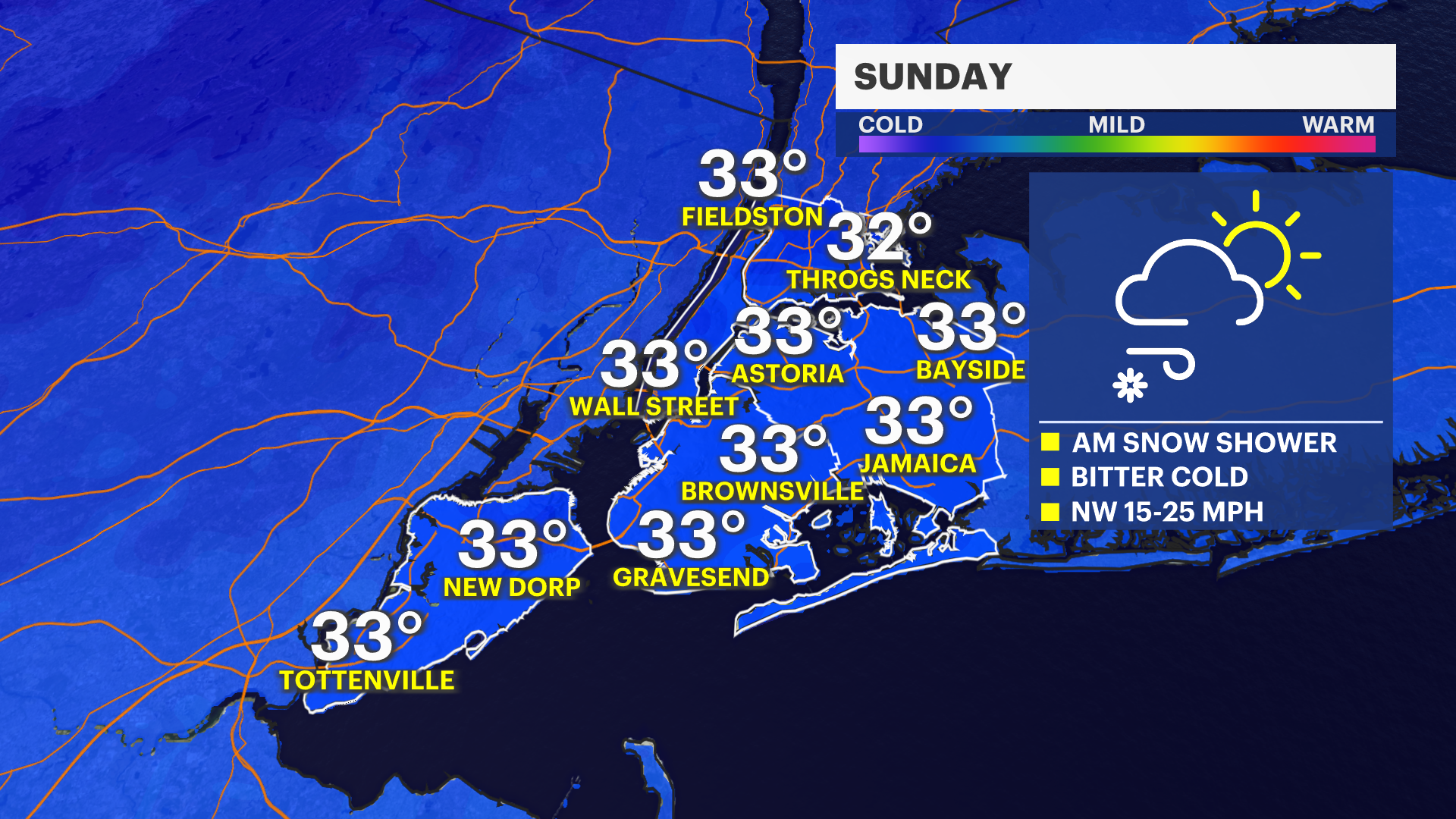 Snow tapers off during the morning commute Sunday, then skies gradually clear through the afternoon as colder; gusty winds move in. Blowing snow and falling wind chills will be the main concern later Sunday, even after snowfall ends.