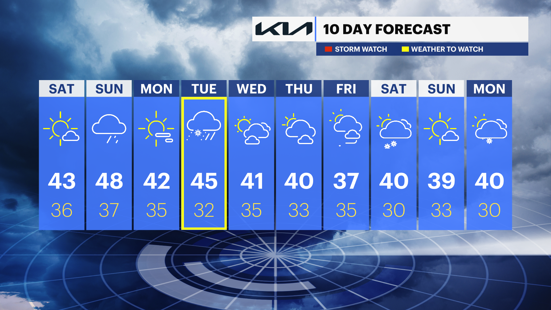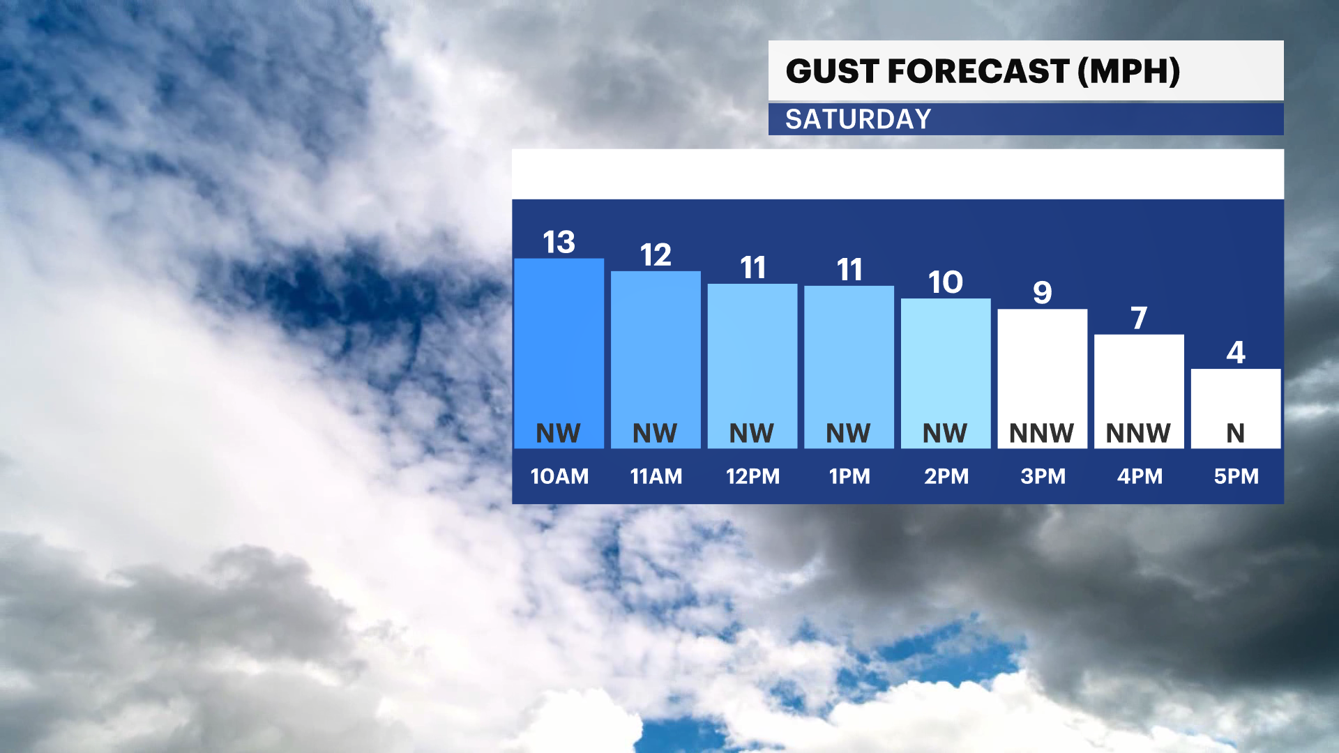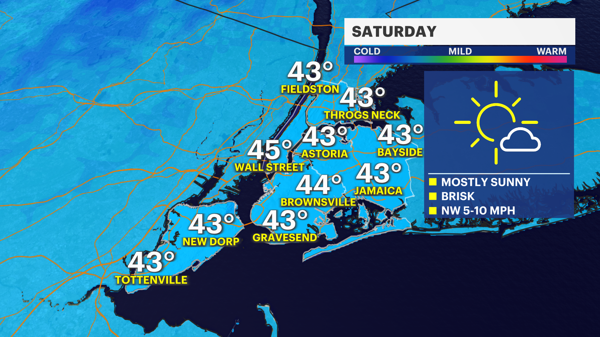 A cold and breezy start leads to a bright but chilly Saturday, with sunshine and highs staying in the low to mid-40s.