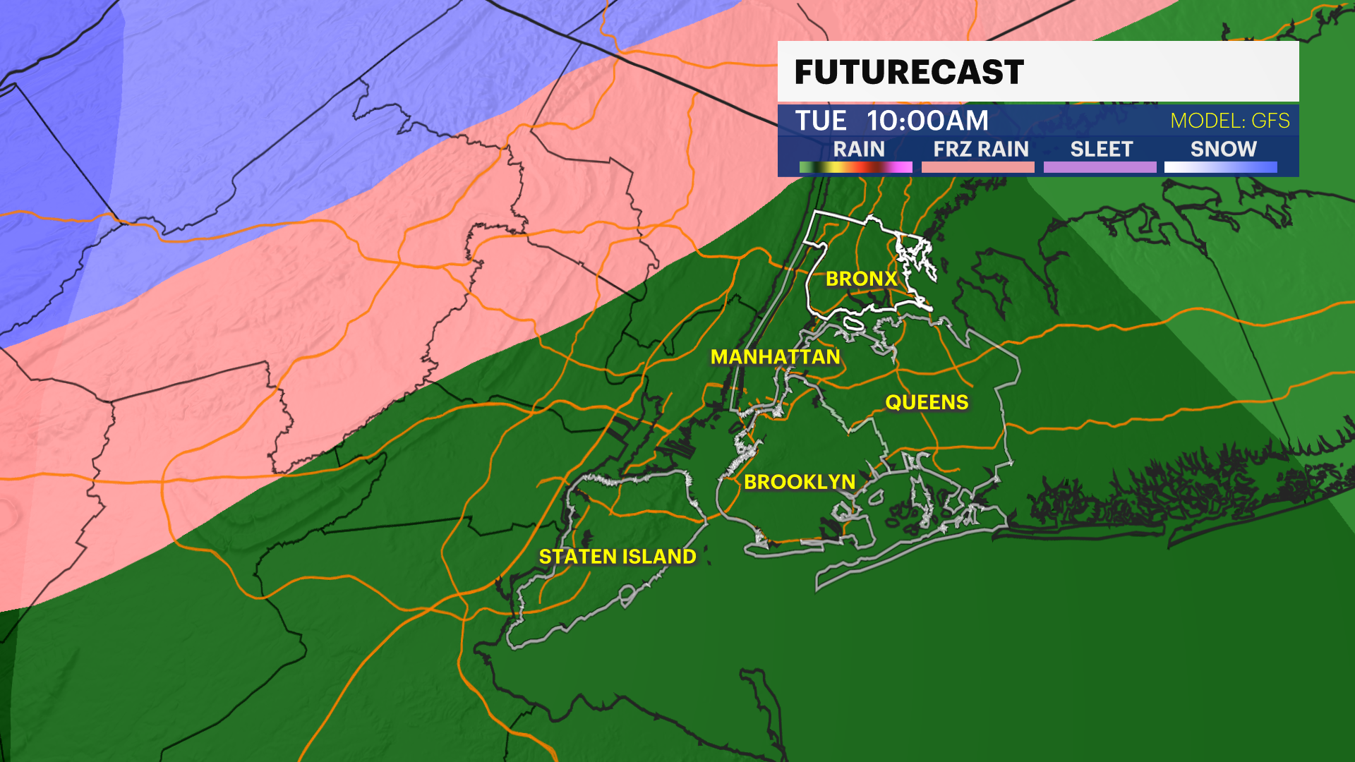 Tuesday: Rain and snow early, switching to rain; highs around 40.