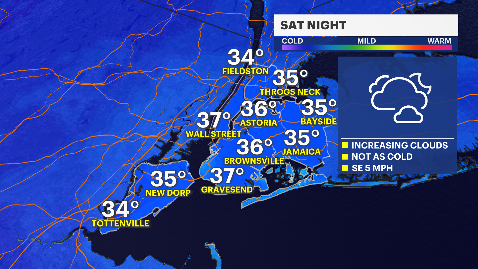 Saturday: Sunny and cold, highs in the low to mid-40s.