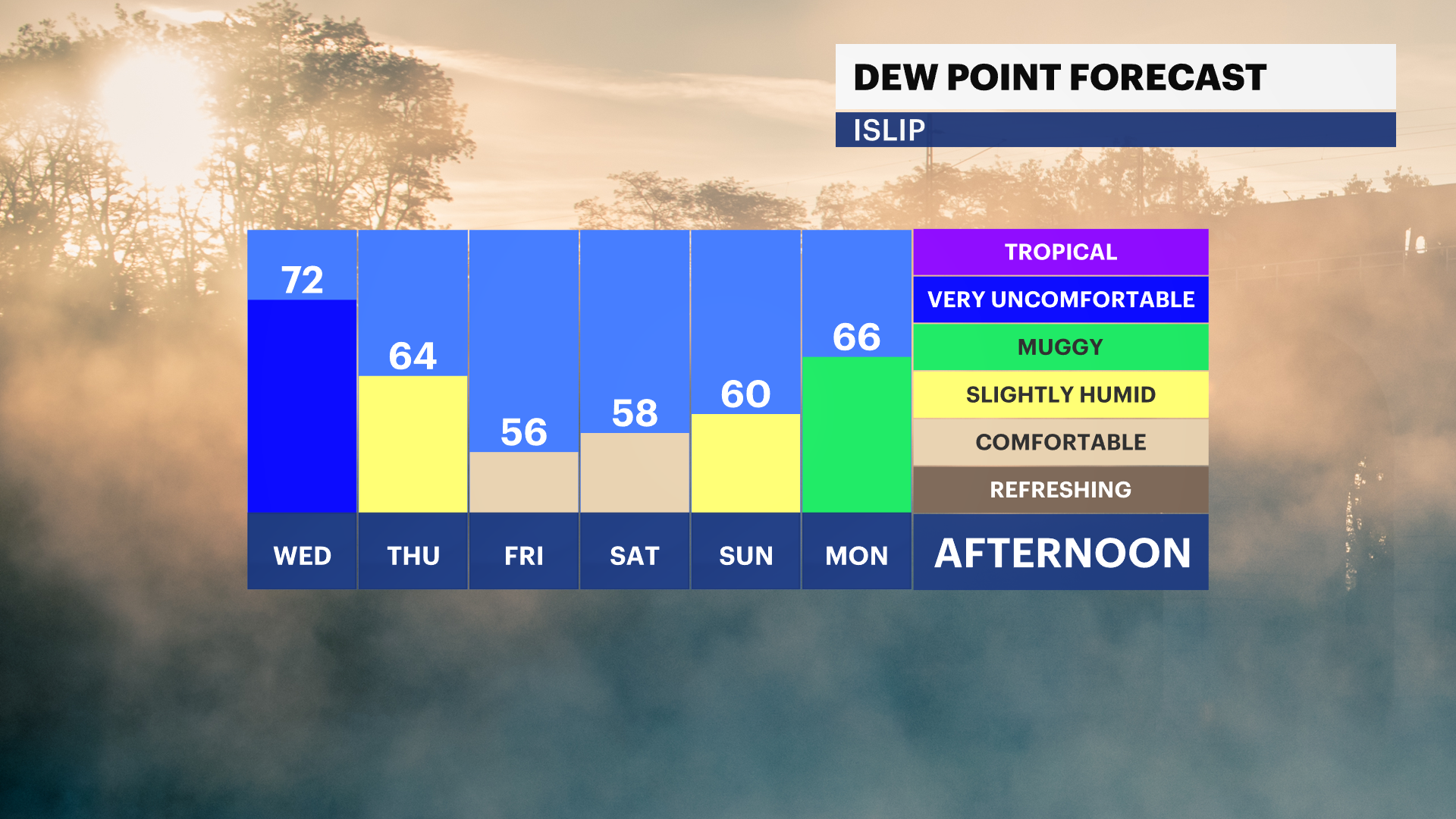 WHAT'S NEXT: Wednesday won't be as hot and humidity will come down in the coming days. Expect a few more showers and storms through Thursday before we're in the clear heading into the weekend. Drought conditions likely continue for Long Island.
