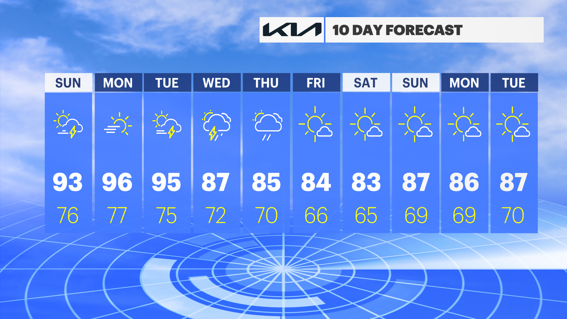TUESDAY: It should be a day of sun and clouds during the morning and afternoon with a shower or storm in the evening and temperature highs in the lower-90s.