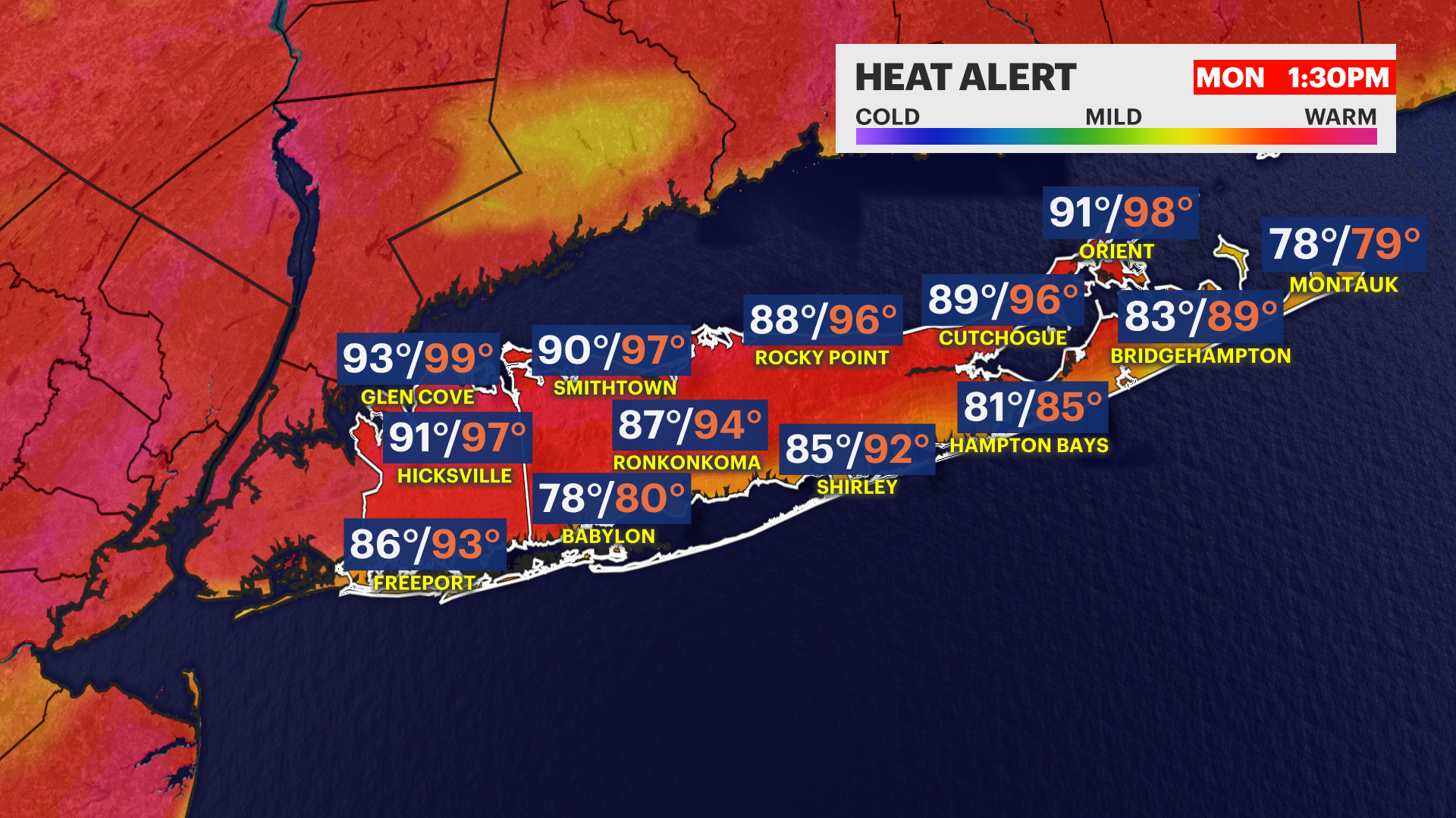 through Tuesday as feels-like temperatures reach 100+ Monday and Tuesday.
