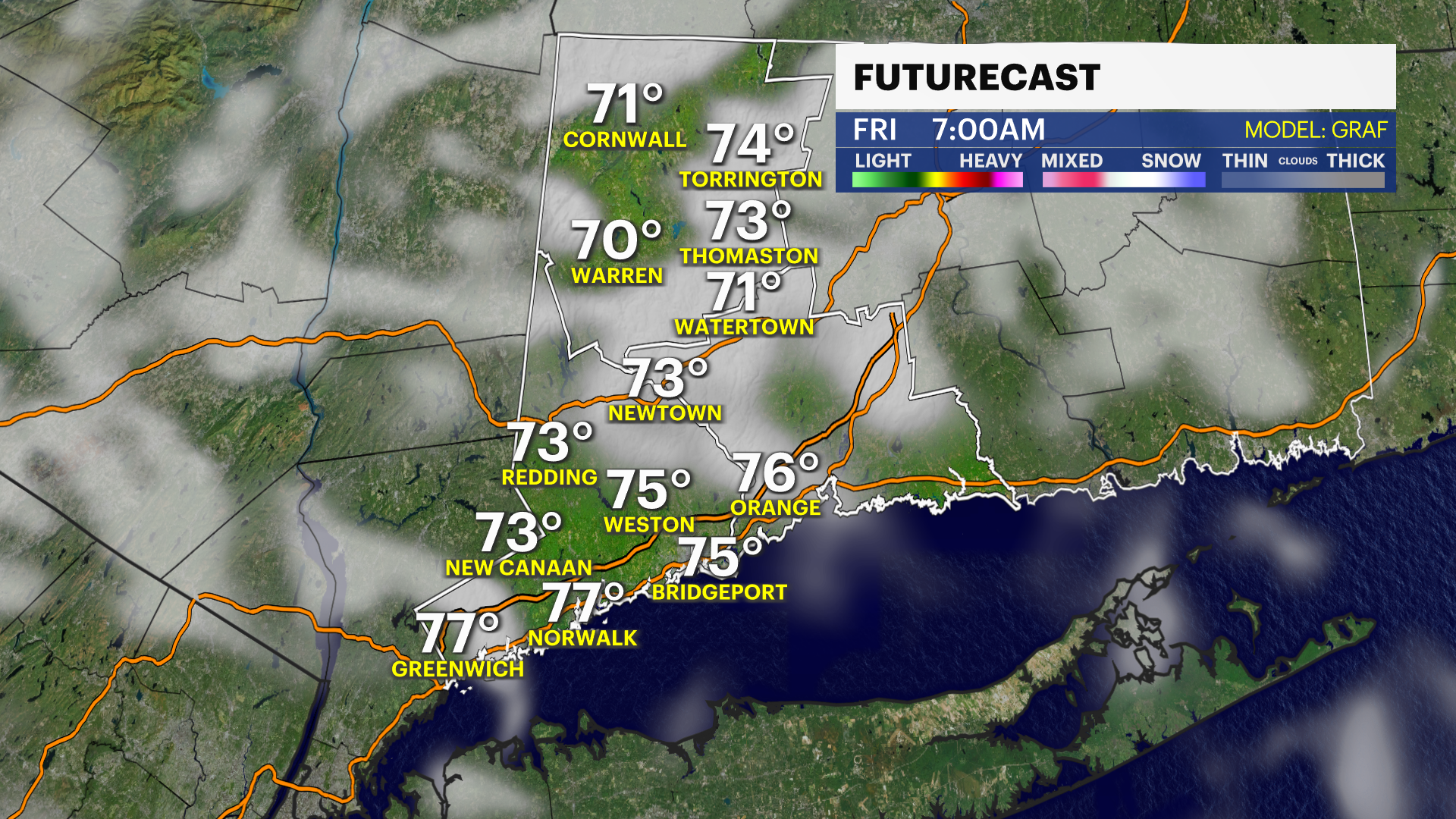 OVERNIGHT: Mostly clear and very muggy. Low of 73.