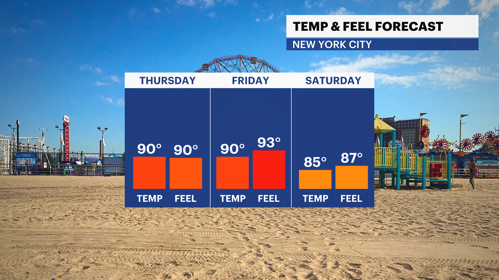 News 12 Storm Team Meteorologist Darryl Green says the weather is staying hot through Friday with highs near 90 degrees. A weak cold front will bring scattered thunderstorms on Friday afternoon. It'll dry out this weekend with warm temps in the mid-80s.