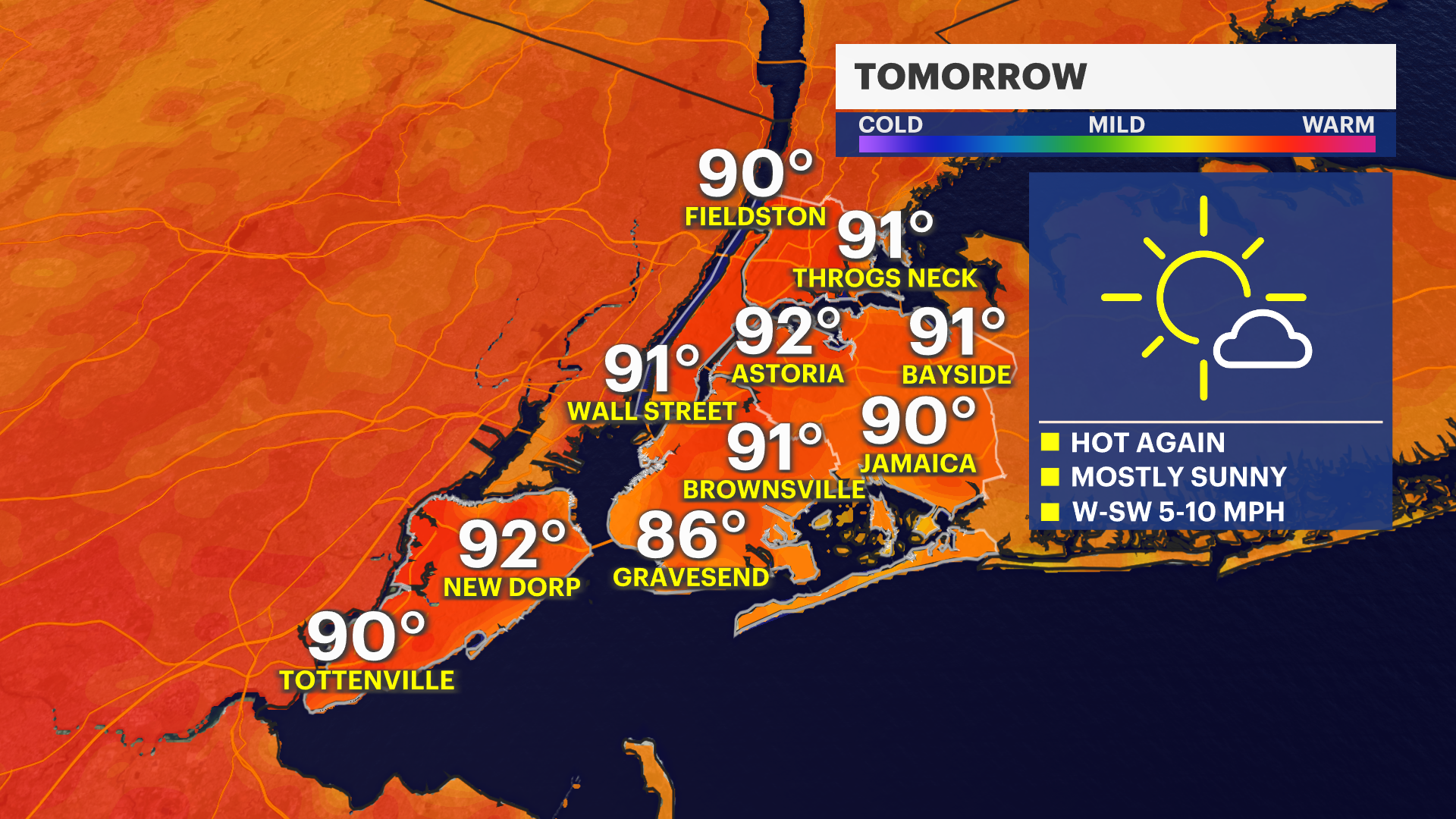 Thursday: Mostly sunny, hot and slightly humid. Highs near 90. Lows near 74.
