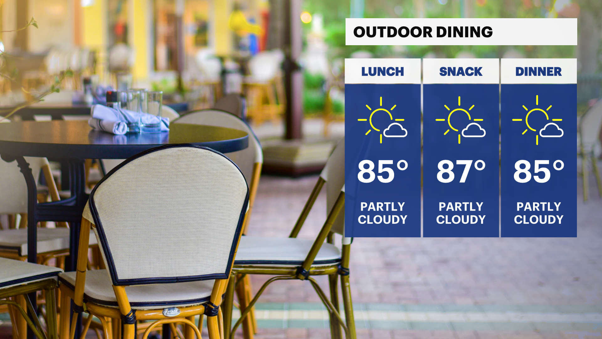Saturday: Mostly sunny and warm. Highs near 85. Lows near 70.
