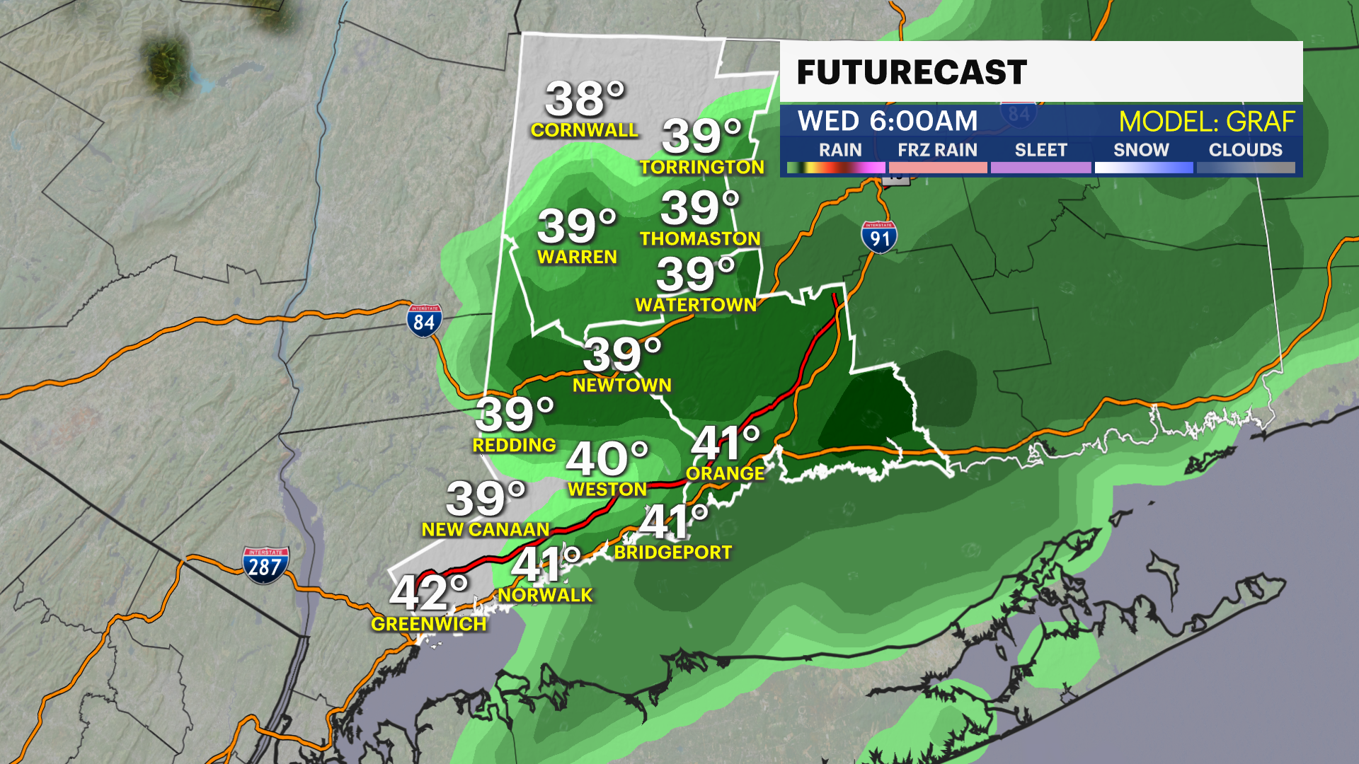 The forecast is now trending toward weaker systems and not a big storm for our area. This means there will be rain showers developing Wednesday as temperatures rise, and then ending as some wet snow early Thursday as temperatures drop.