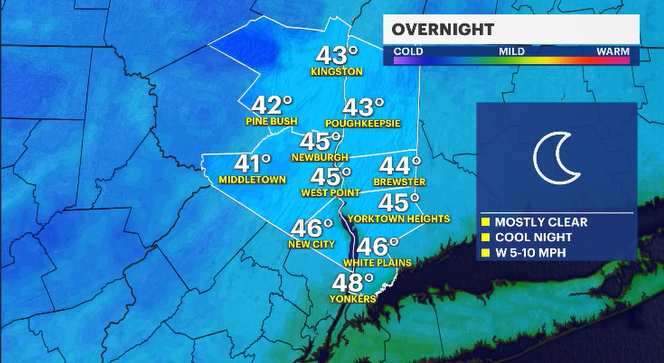 OVERNIGHT: Mostly clear, cool, and dry. Lows in the 40s.
