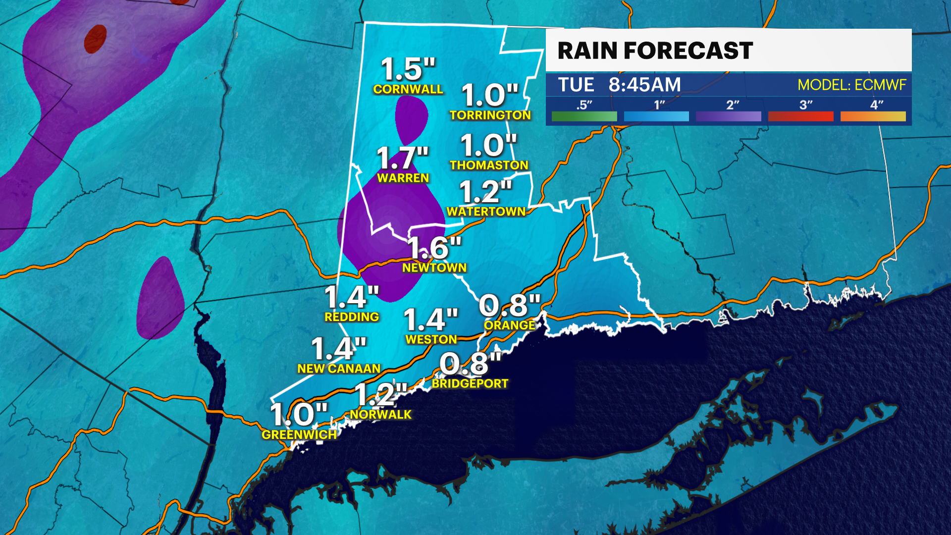 MONDAY: Rain and wind continue. Dries out by pm. Highs in the lower 60s, lows in the low 50s.