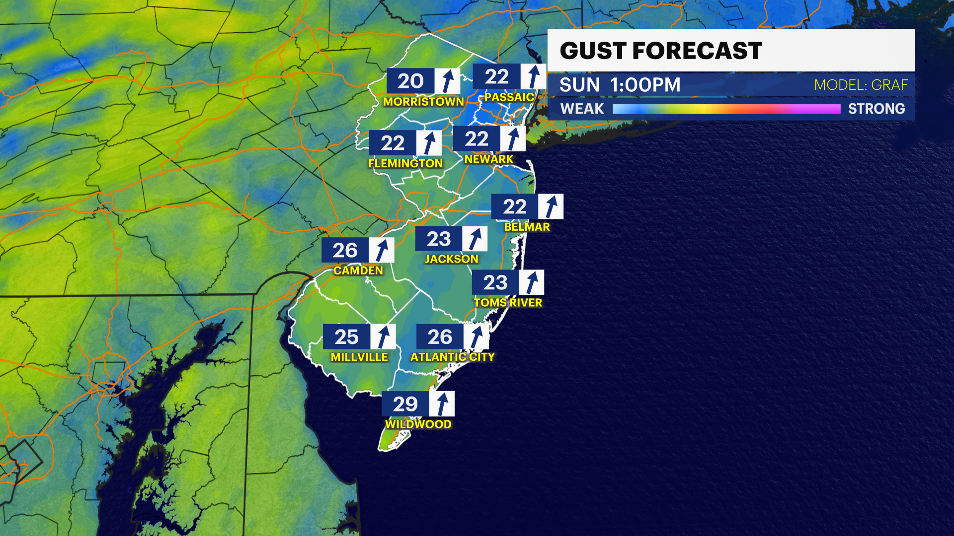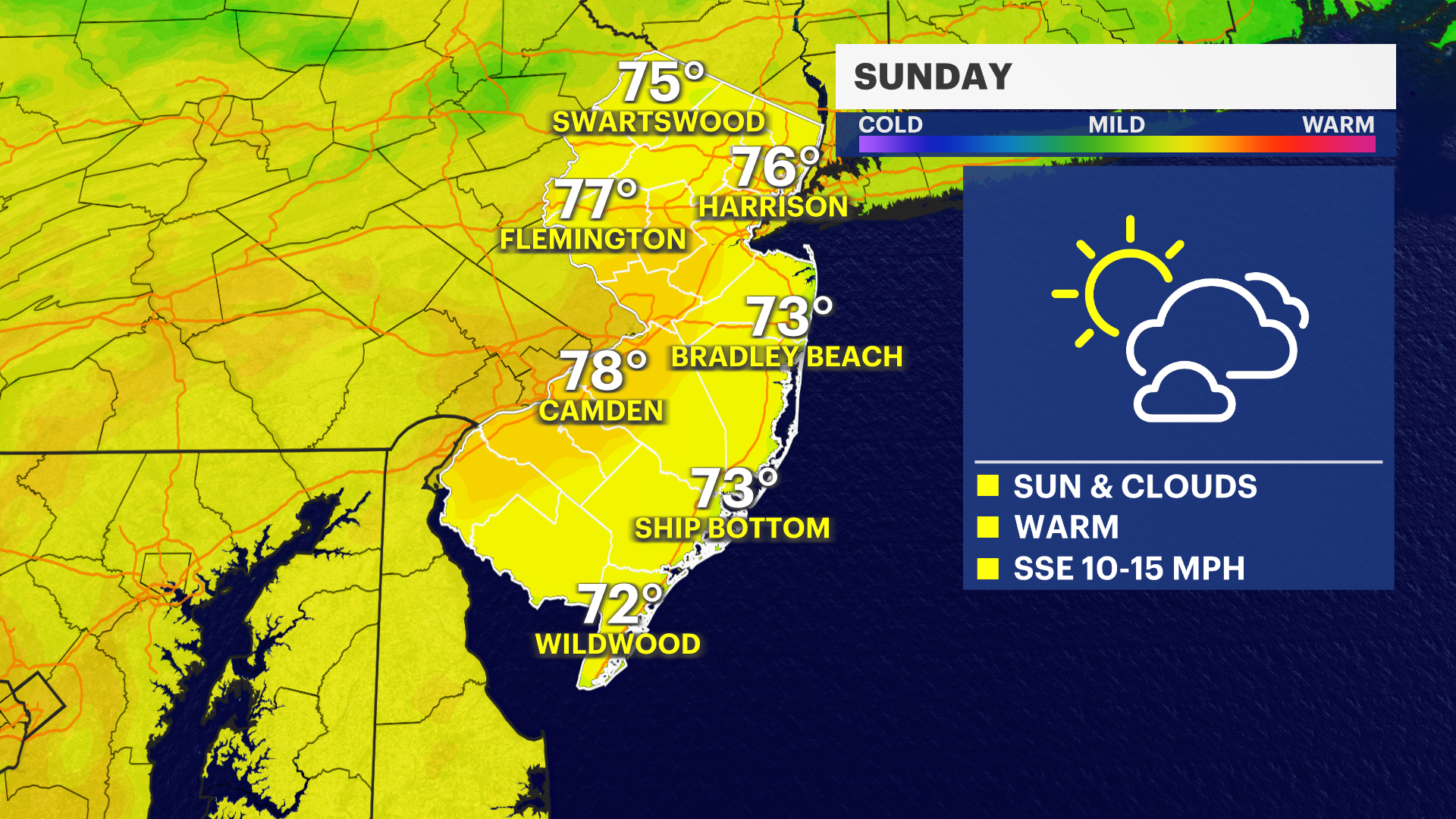 Mostly pleasant, windy and late-night rain Sunday in New Jersey