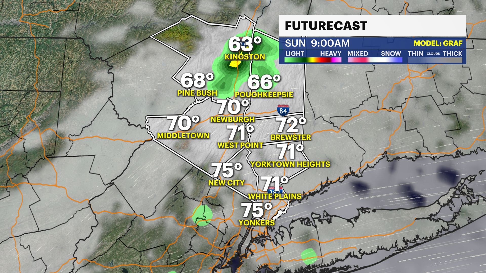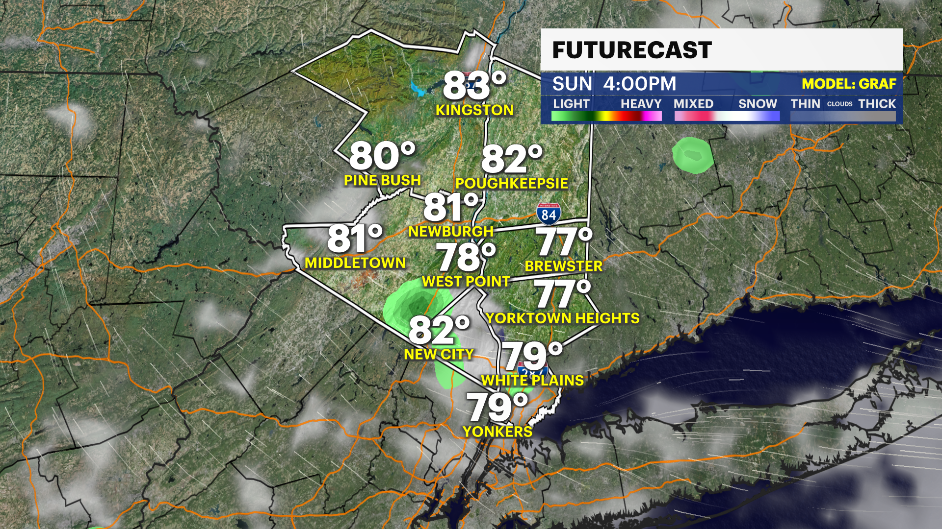 SUNDAY: Partly sunny with a slight chance of a passing light shower