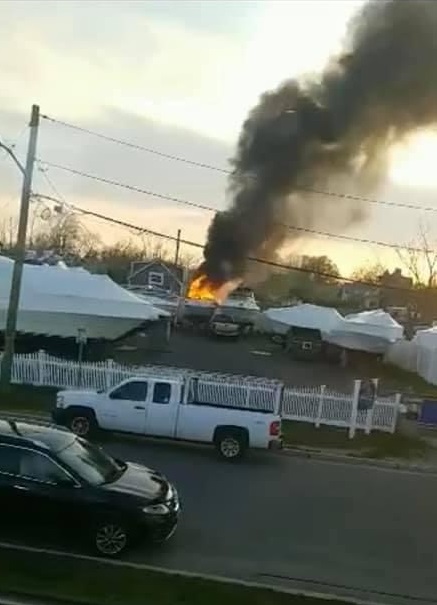 Photos from the scene show the sizable flames and smoke that came off the boat.