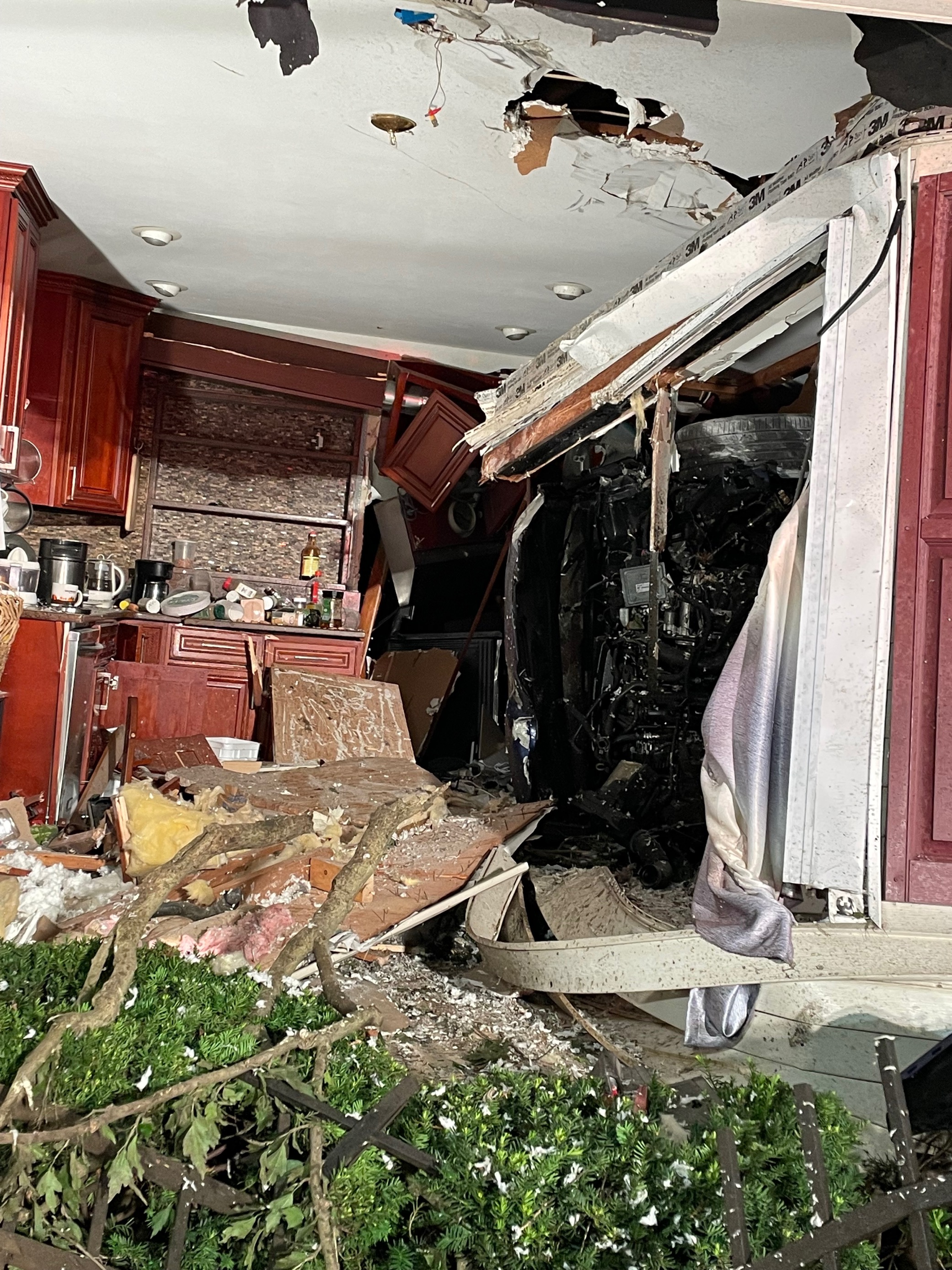 The car launched into the first floor of the townhouse, just inches away from the homeowner’s bedroom.