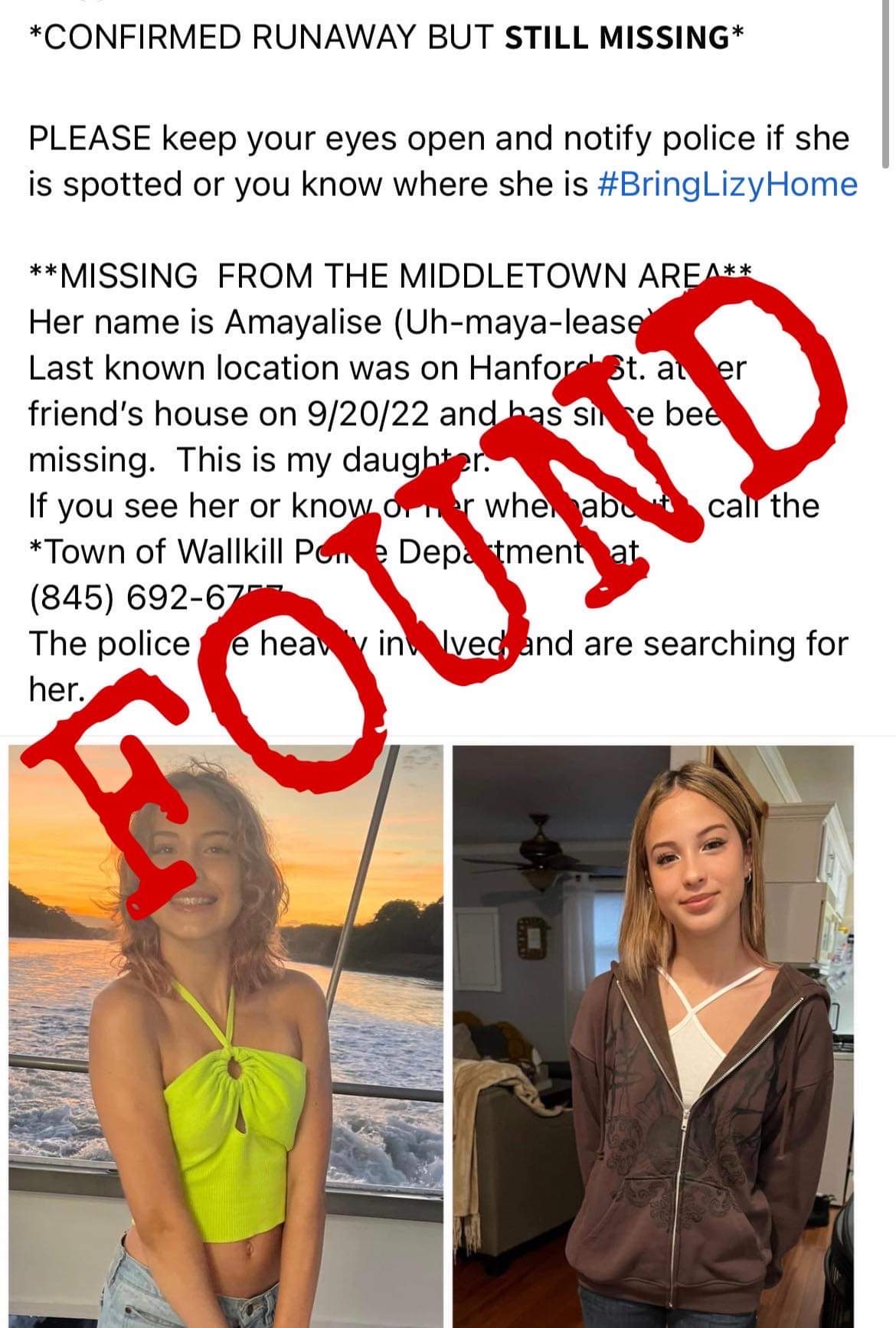 Amayalise Perez, 14, has been found according to her mother, Carie Rodriguez Gonzalez.