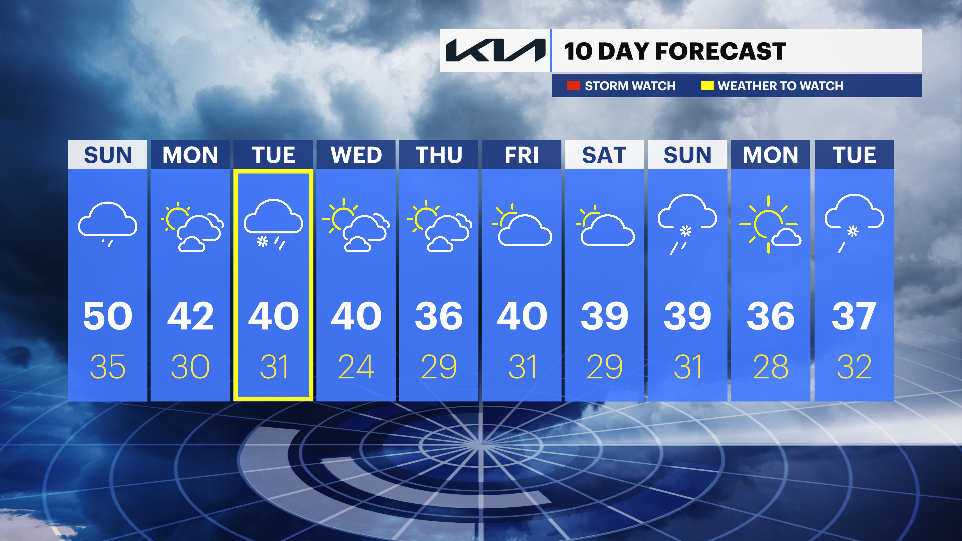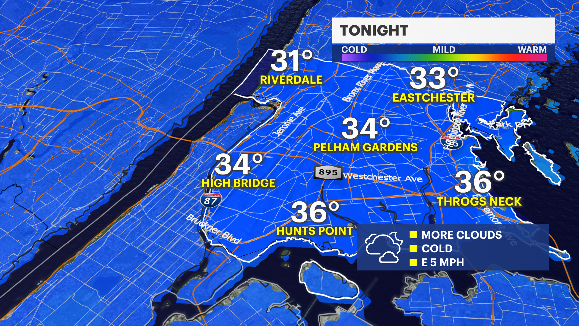 Wednesday: Mostly sunny and chillier; highs near 40.