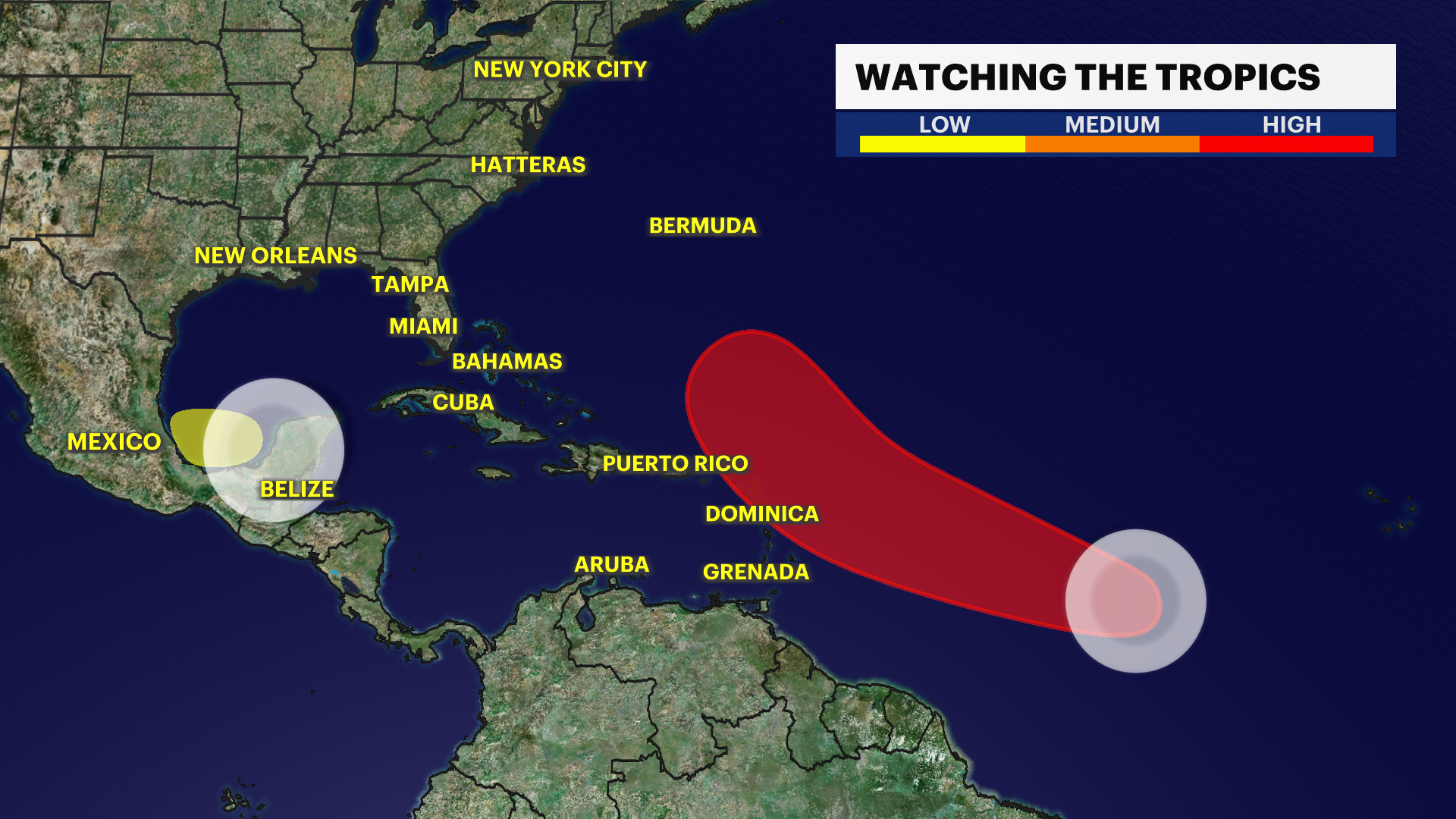 TRACKING THE TROPICS: There are two tropical waves in the Atlantic and Gulf that have a low to high chance of developing over the next several days. The tropical wave in the Central Tropical Atlantic is likely to become a tropical depression or storm over the next day or two near the Northern Leeward Islands.