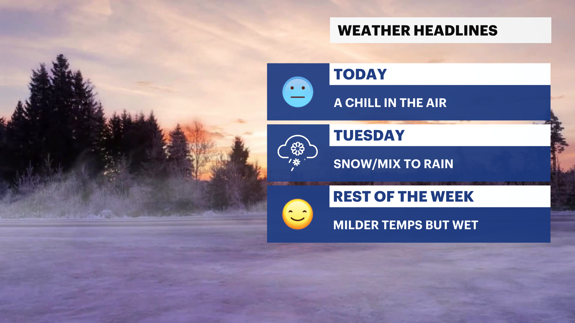 Our workweek has gotten off to a cold start today and will remain rather cold, but milder temperatures are on tap this week along with a brief period of wintry weather.
