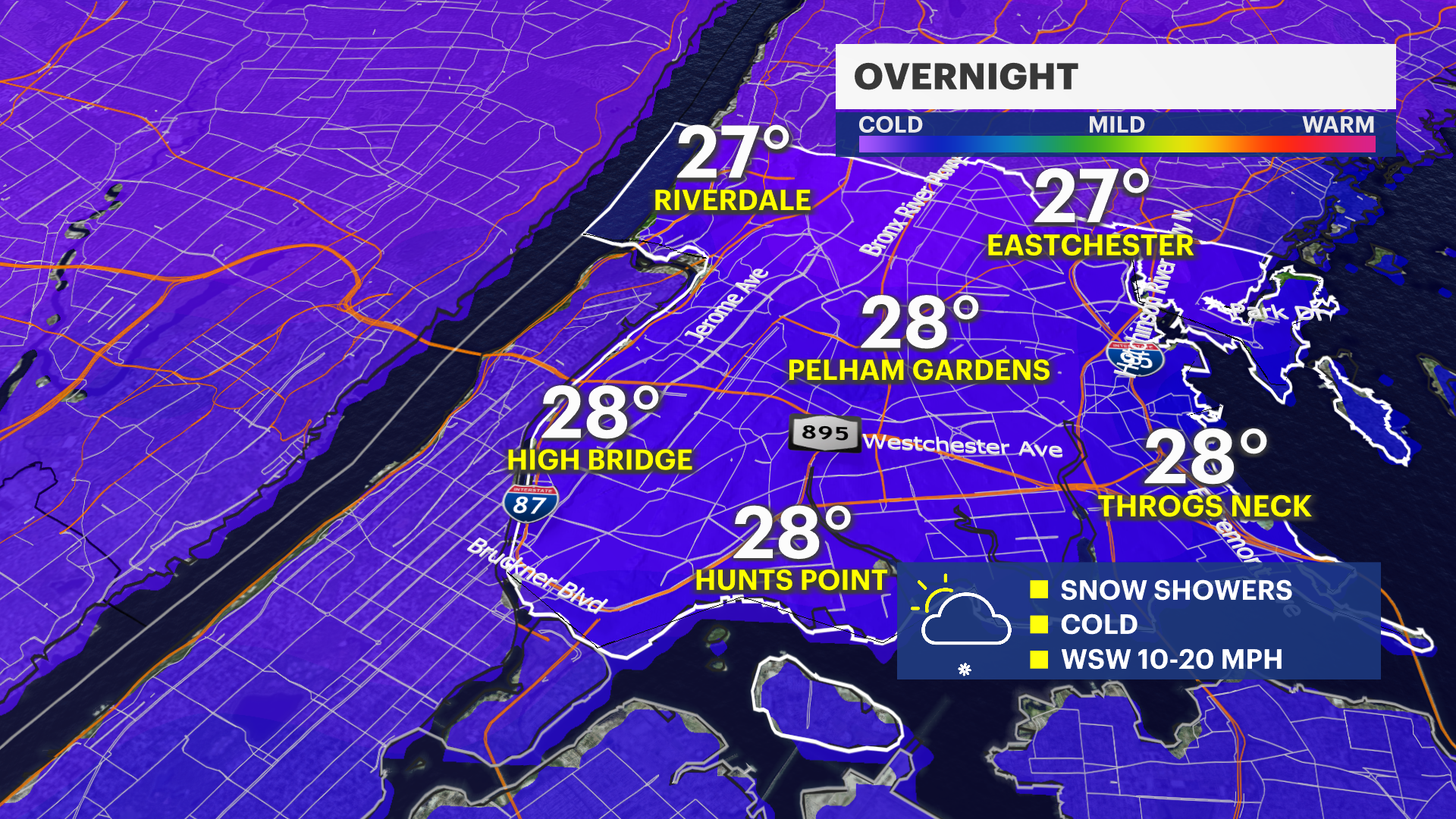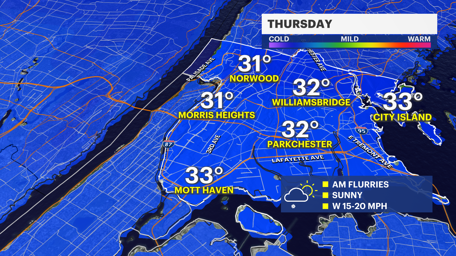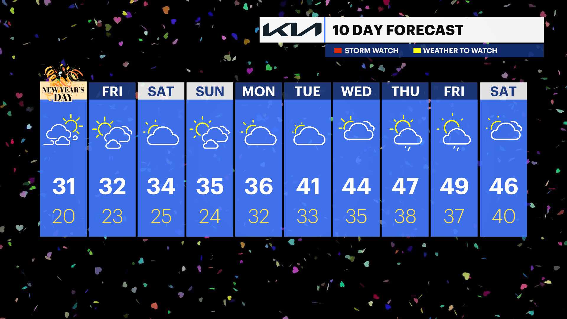 Thursday: Partly sunny with highs in the mid-40s.