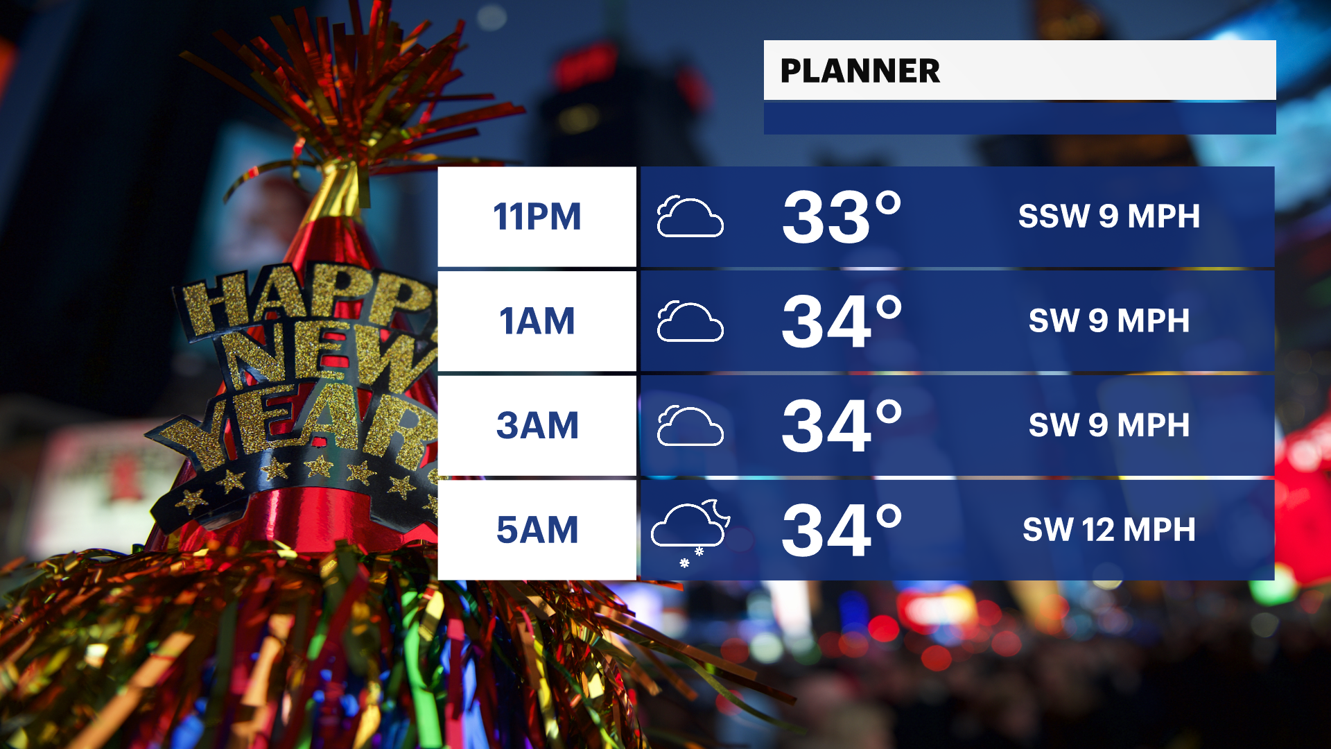 Saturday: Increasing clouds with temperatures in the low- to mid-30s.