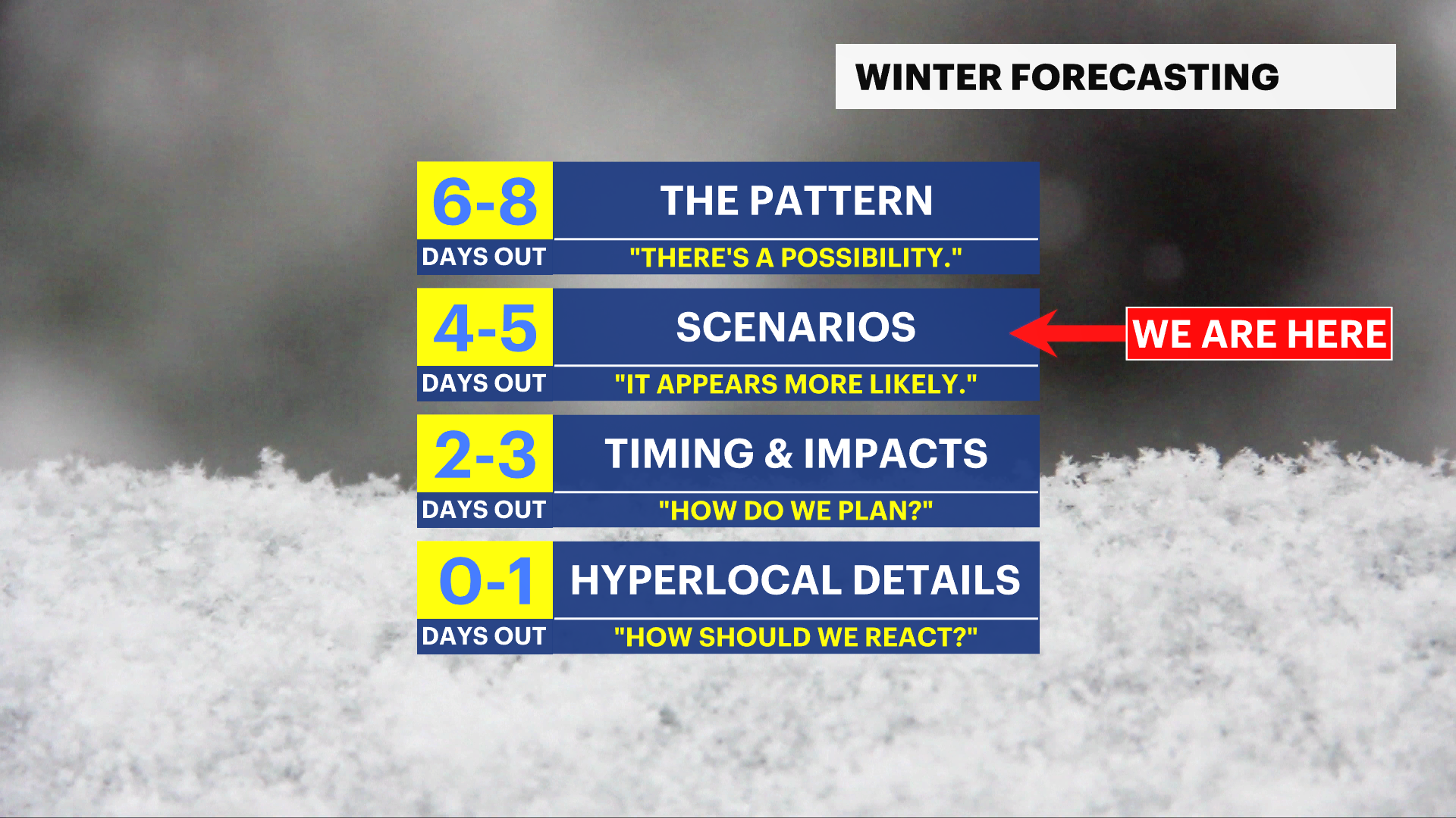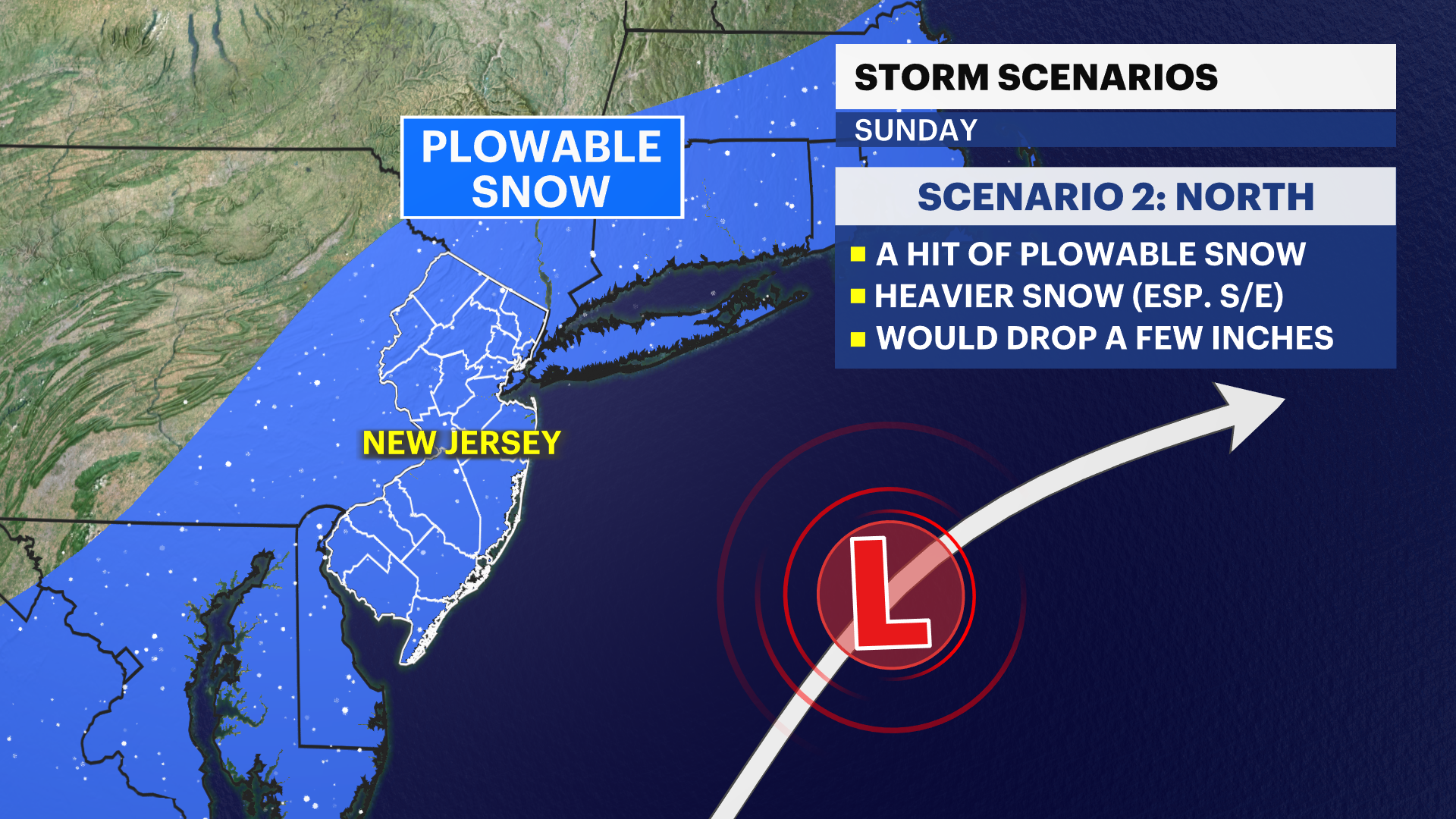 This "fringe effect" won't blanket much of the state except for areas south and east with light accumulations. The other scenario would be a more northerly track, which hits the state with plowable snow, especially south and east. The trend this season can be described by storms taking a more northerly track than expected, which does lend more attention to the possibility of such an impact.