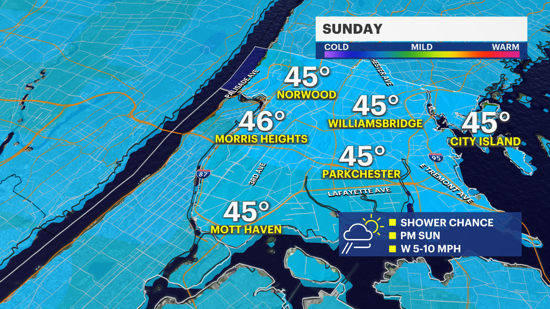 SUNDAY: After morning showers fade, expect partly cloudy skies with breezy winds at times.