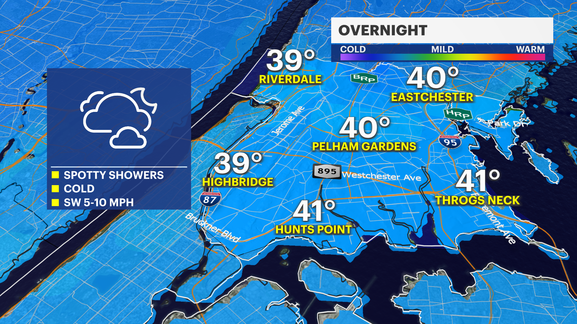 Today: Mostly sunny, cold, and breezy. Highs near 41.