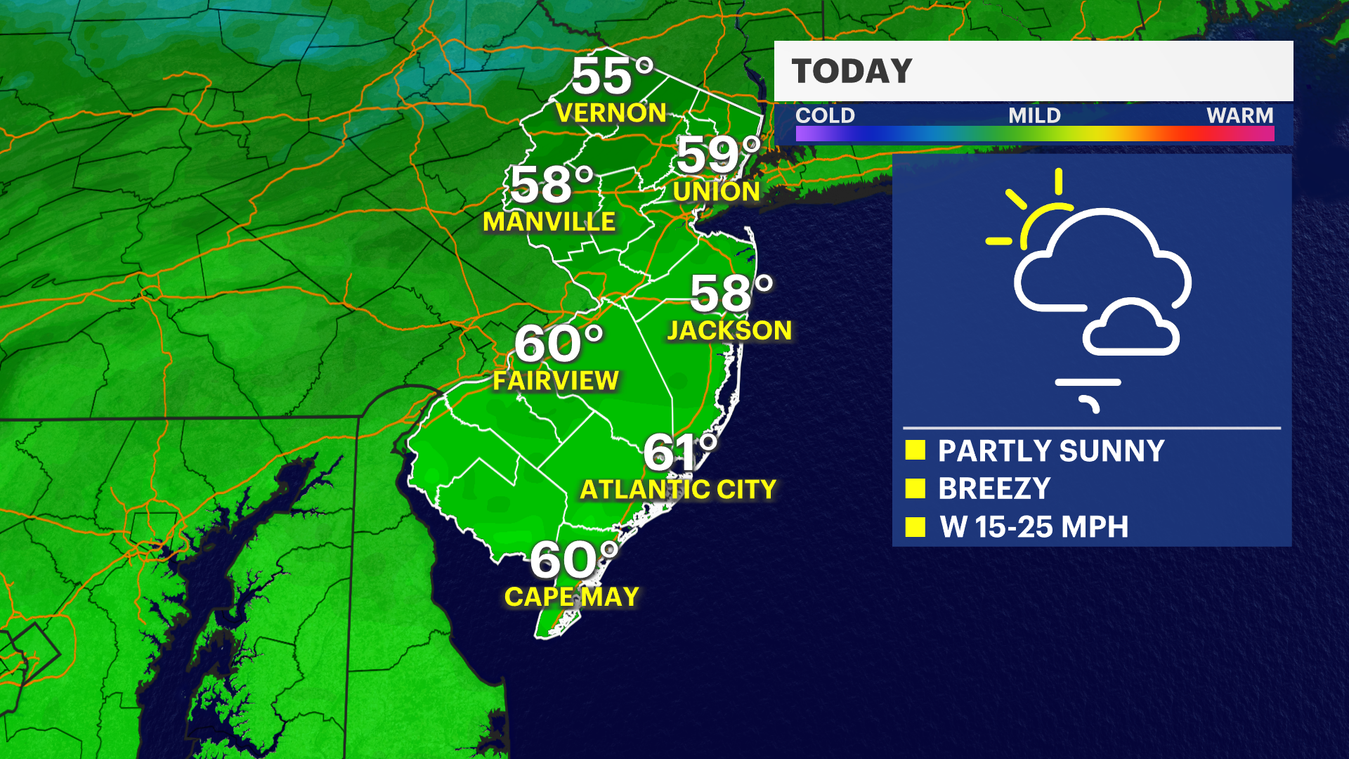 Breezy, bright start to the weekend in New Jersey