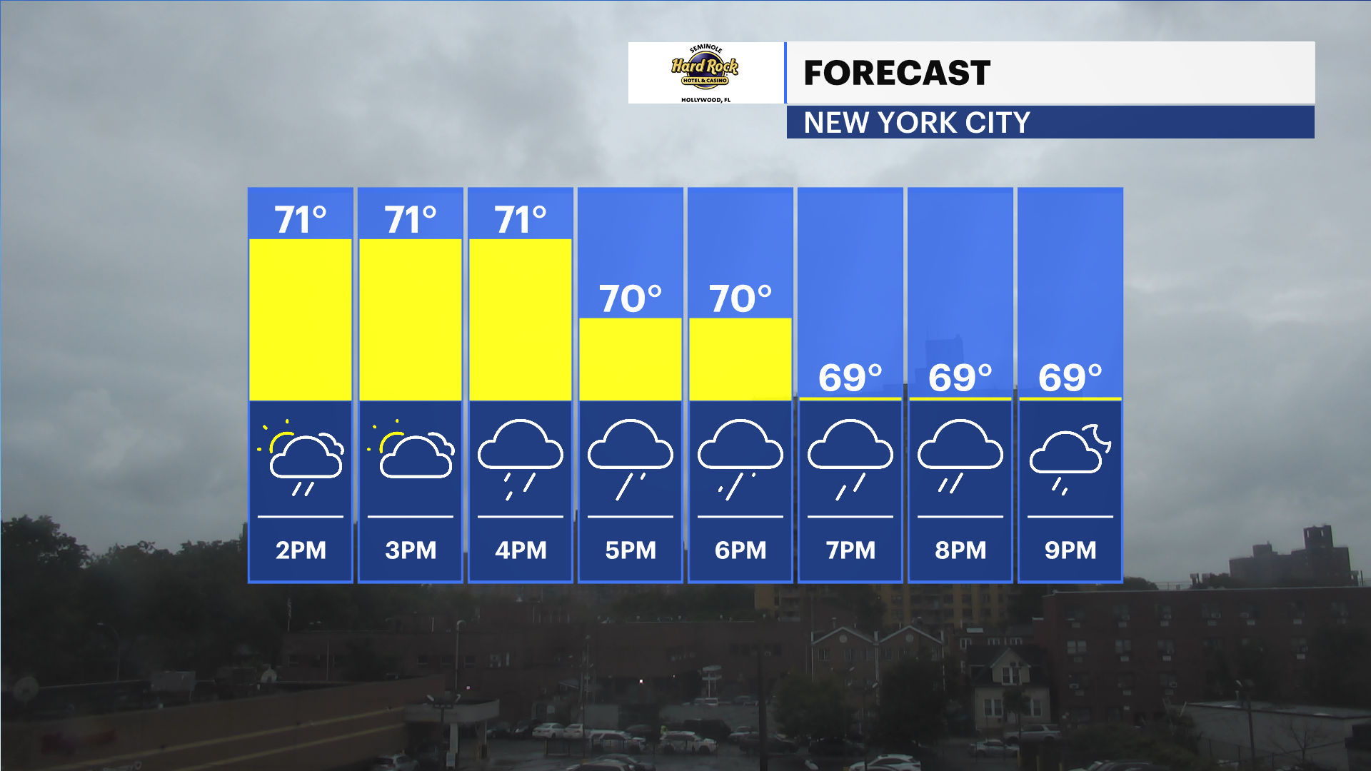 Overnight: Scattered showers, cool and damp. Lows near 62.