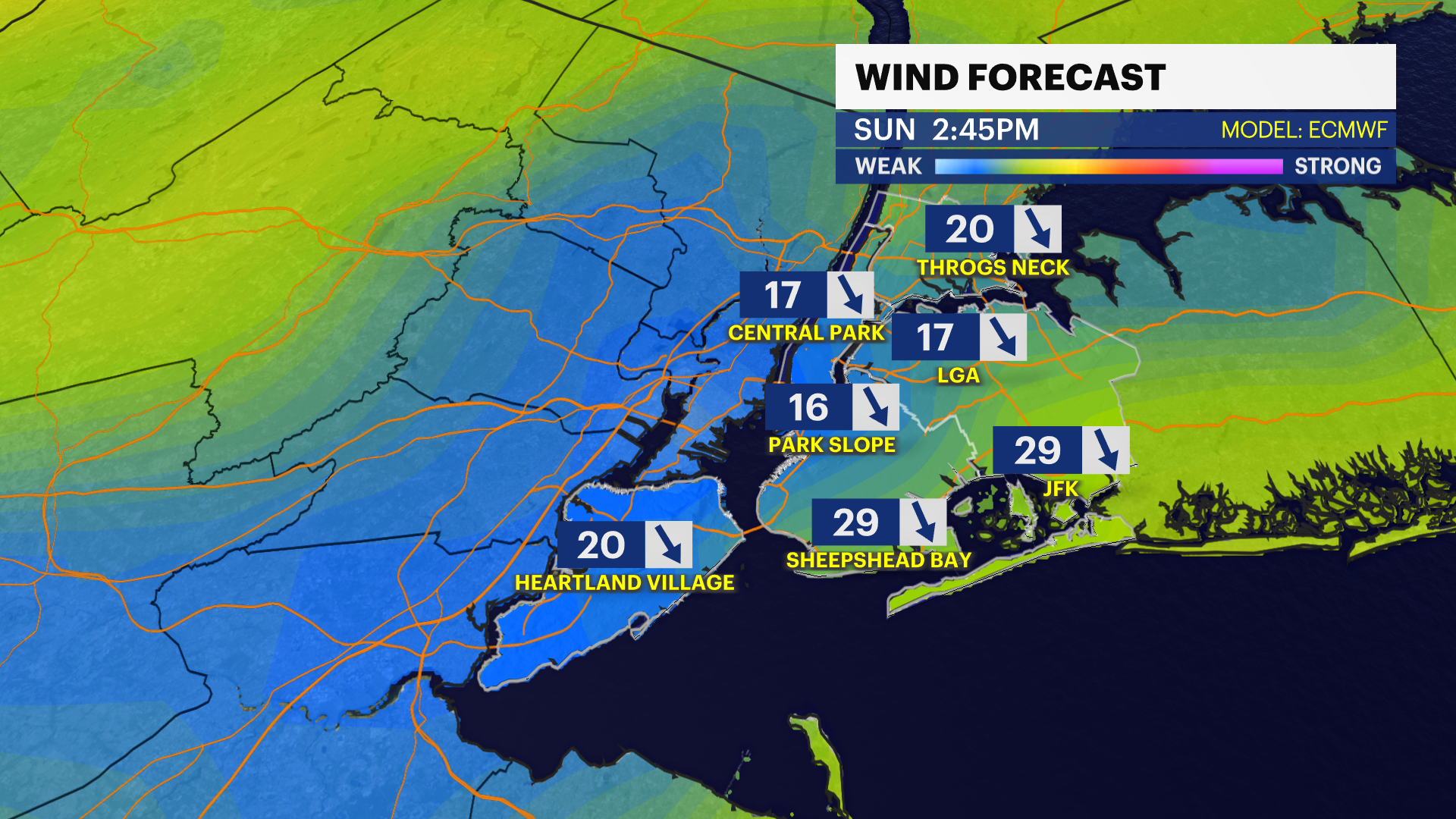 Sunday: Mostly sunny and very cold, with highs in the upper teens to near 20.
